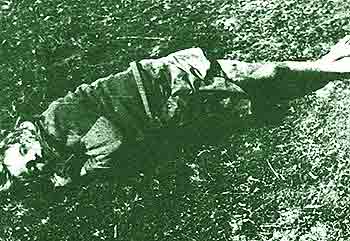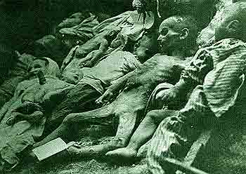 Nikada ujutru nisu svi ustali. U prljavoj slami ostajali su mrtvi. (Gore desno)