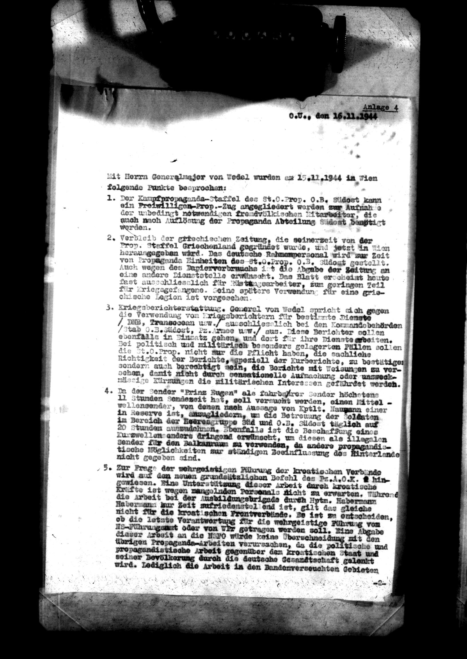 Zabilješka sa sastanka sa izaslanikom Neubacherom održanog 30. jula 1944 (31. juli 1944).
