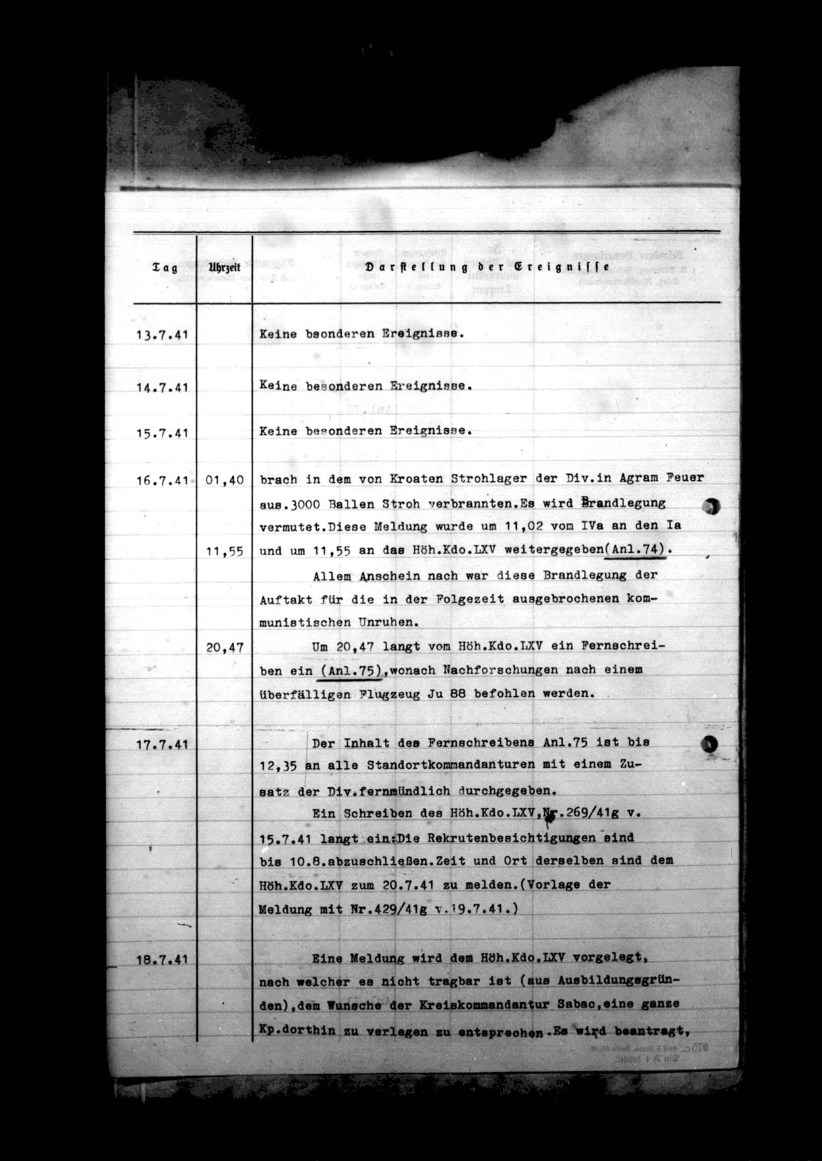 18349/3 - 718 Inf Div. Ia, Anlagenband II zum Kriegstagebuch. Anlagen 51-130 - Annexes to War Diary. Reports relating to issuing of equipment, combat training, unit occupation duty, and antipartisan warfare in Yugoslavia., June 27, 1941 - August 13, 1941564