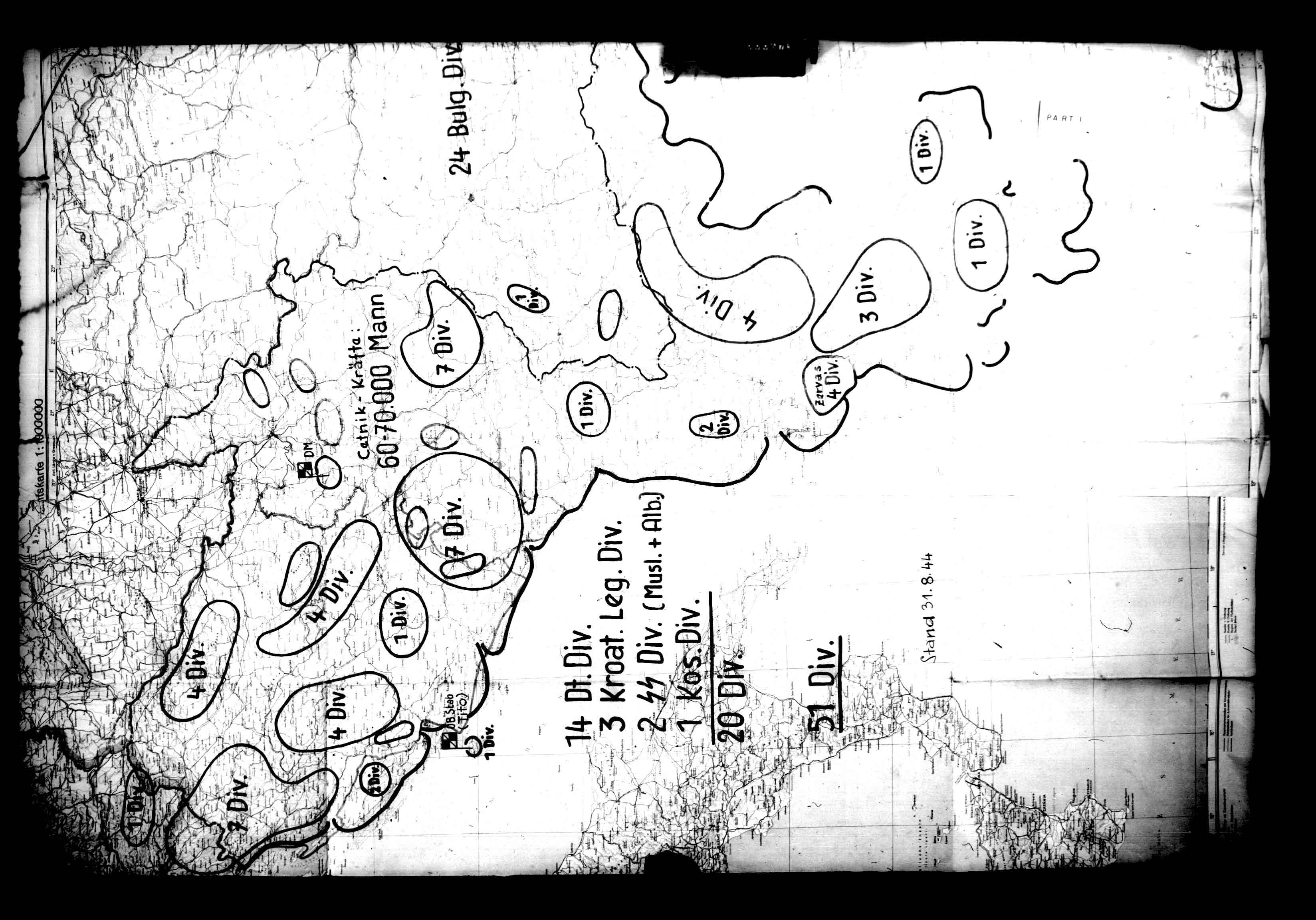 34404/3 - Ia, Anlagenband XXVII zum KTB 3. - Orders, reports, messages, maps, and overlays pertaining to operations against Communist and Chetnik groups, reconnaissance and mopping-up action, security, formation of the Croatian 4th Jaeger-Brigade, training, regrouping, and partisan activity in the Visoko, Sarajevo, Rogatica, Vlasenica, Tuzla, Travnik, Jajce, Kiseljak, Tarcin, Zenica, Zavidovici, Vares, Kupres, Jezero, Kladanj, and Derventa areas; reorganization as the 718. Jaeger-Division, approved on 10 Feb 1943, and redesignation as the 118. Jaeger-Divisicn, 1 Apr; and preparations for and participation in Unternehmen Weiss II (operations against partisans to secure the bauxite mines in the Mostar area) and the support of Unternehaen Konjic (operations against Communist groups in the Konjic area), 22 Feb-22 Mar. Order-of-battle charts; billeting surveys; an afteraction report, 28 Mar, concerning assembly for and Unternehmen Konjic and return to former stations, 23-26 Mar; tables of organizational breakdown, combat and ration strength, ammunition and weapons expended, and losses of the division and attached Croatian ad Ustasha units; reports regarding Communist, Chetnik, German Military, traffic, and the economic situation and losses; and intelligence reports and bulletins. Feb 02 - Feb 28, 1943., February 02, 1943 - February 28, 1943 izdvojeno: | 650 |