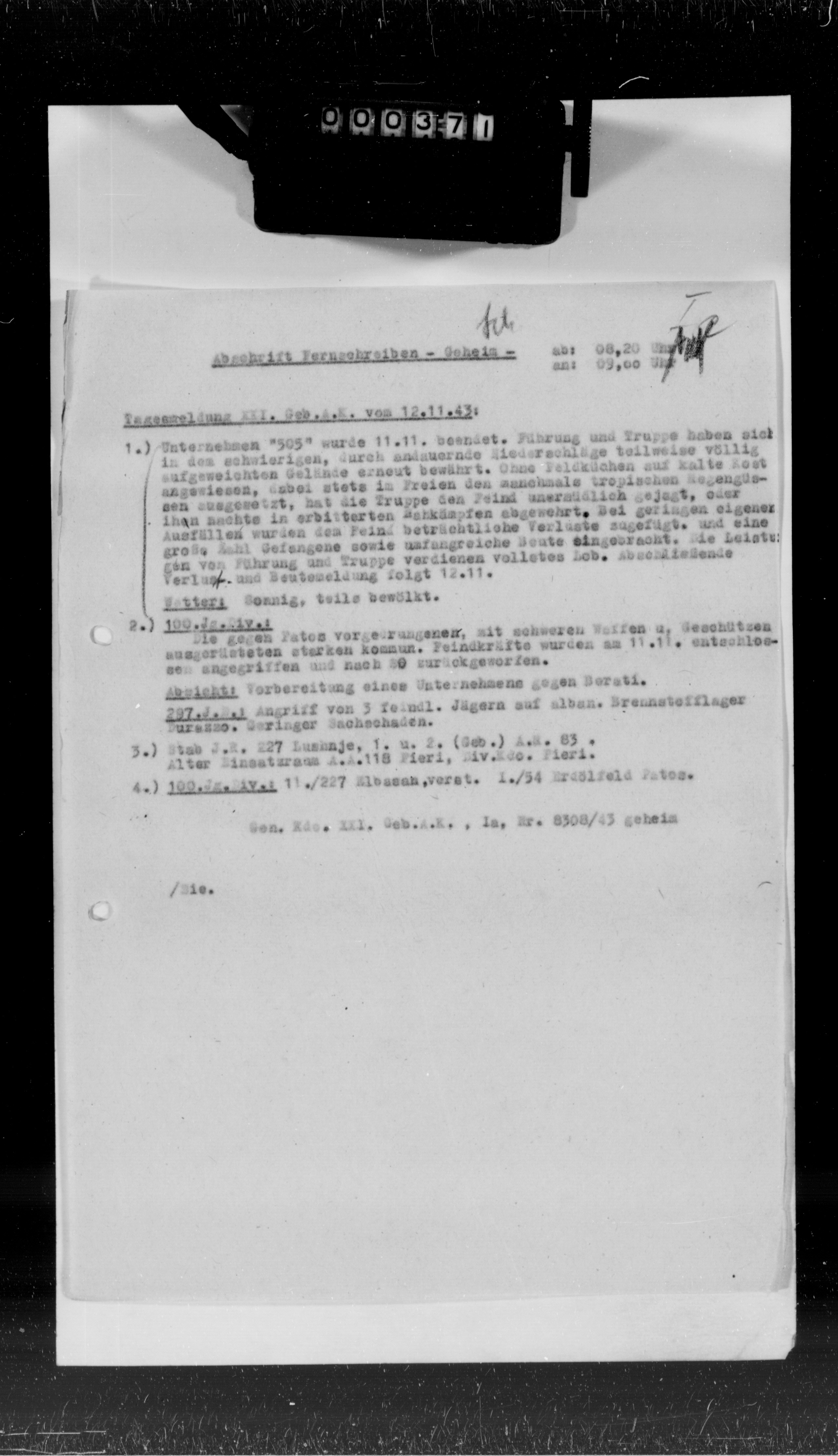 - Tagesmeldung Mil.Befh.Südost vom 17.11.43