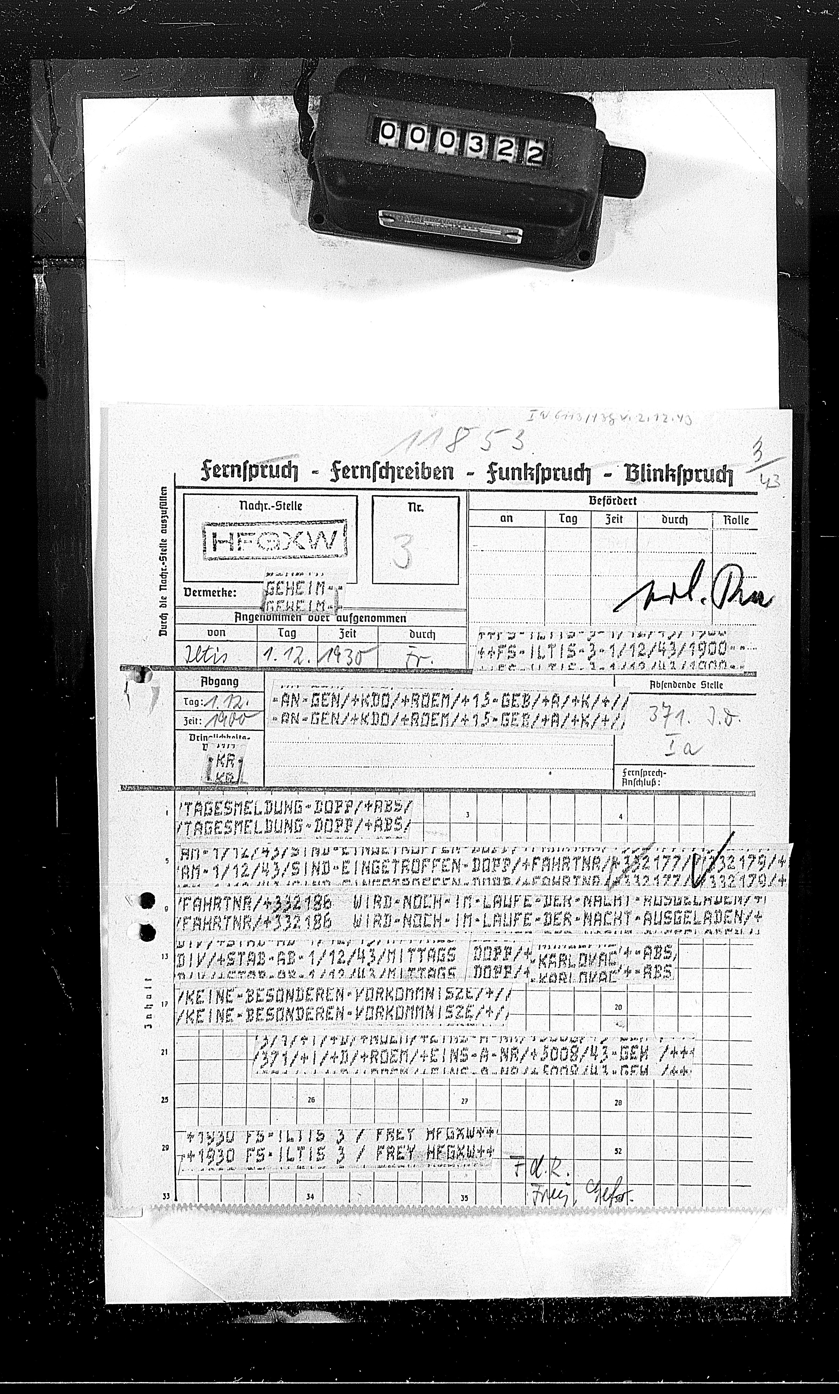 Geb AK XV, 46764/15, Tagesmeldungen 371. I.Div. - Daily Reports 371st Inf Div. Reports describing daily tactical situations within the 264th Inf Div area of operations during the 15th Geb Corps campaign in Croatia on the Northern part of the front, between Tulsilovic-Vionic and Agram., November 29, 1943 - December 31, 1943