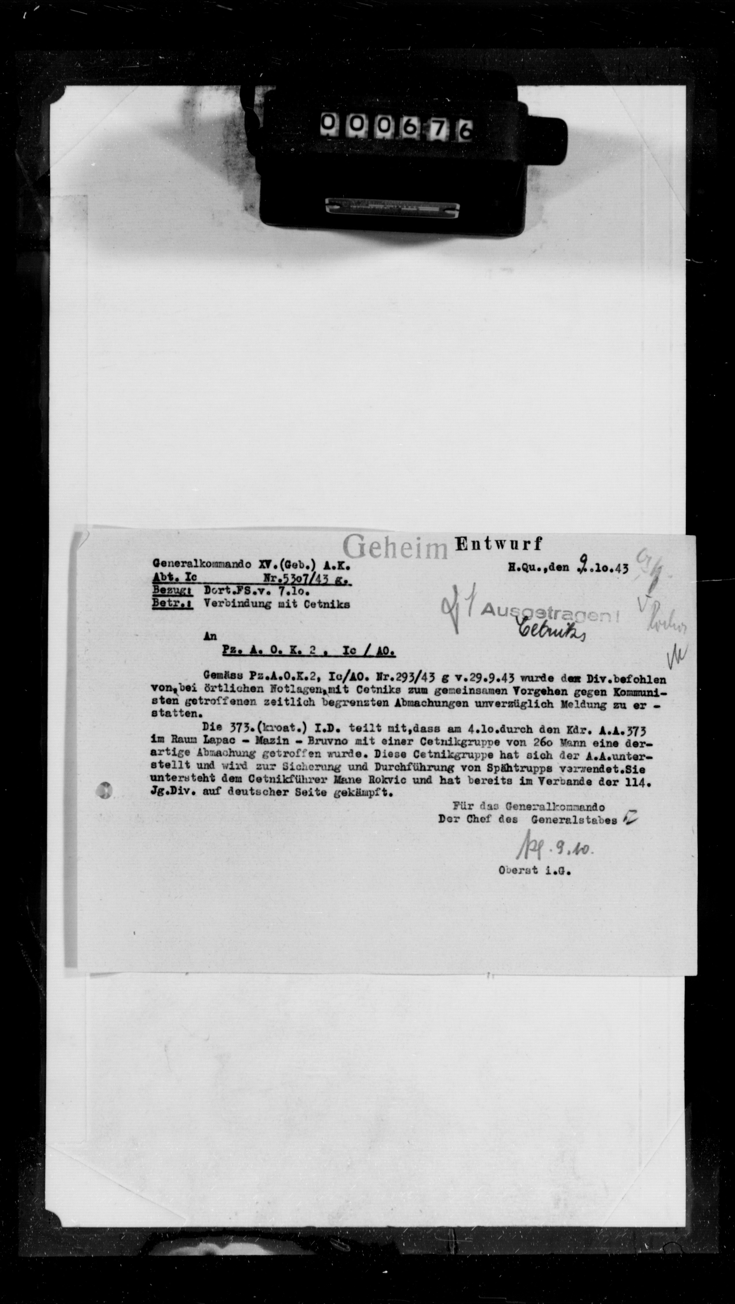 - [Za telegram 15. brdskog korpusa od 23. septembra 1943 vidi ista rolna, snimak 000790.]