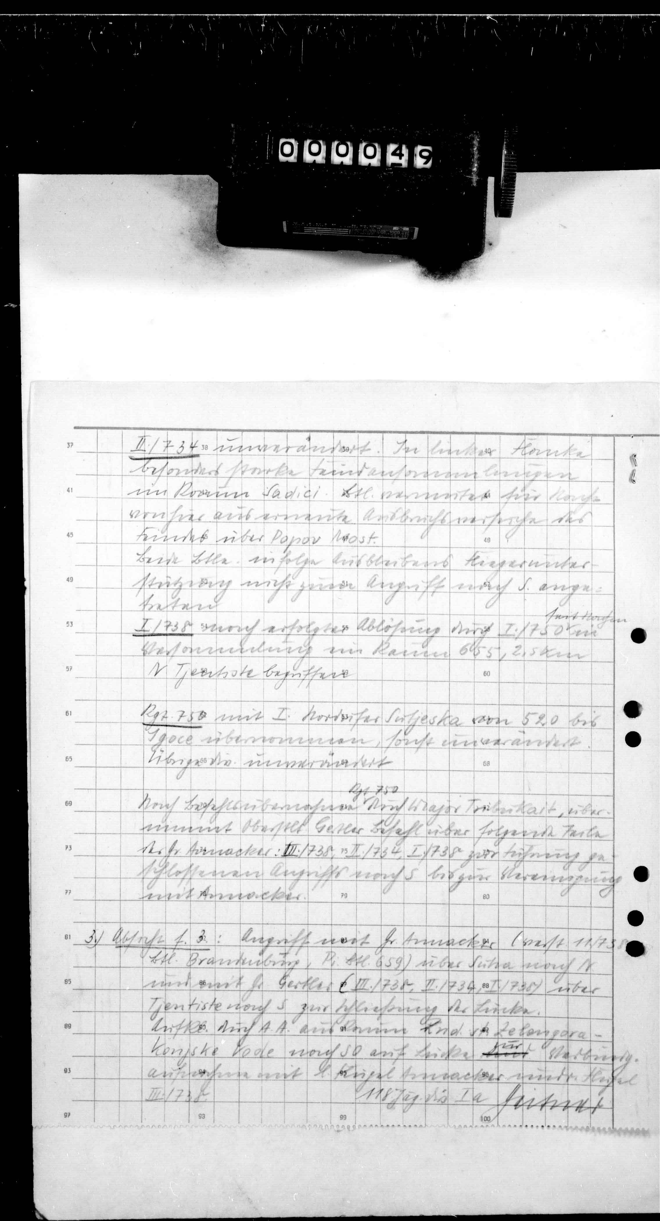 - 000394: U 12./738. ostalo još samo 24 čovjeka; 14.6.43 -prošao mirno, osim što je nastavljeno čišćenje i uništavanje velikog broja skrivenih partizana, neki od kojih su se branili i nakon ranjavanja.- (frame no. 385)
