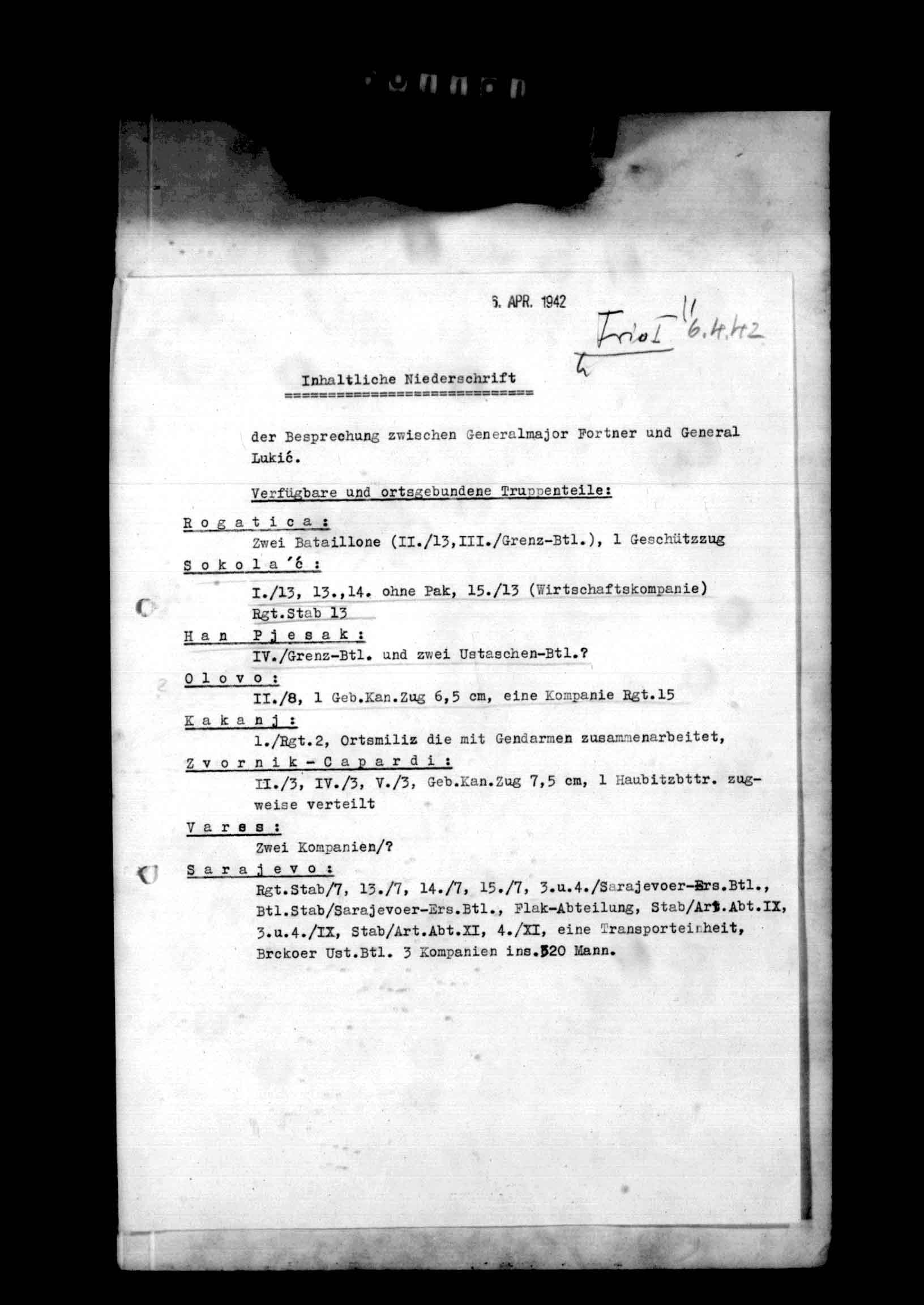 28326/10 - 718 Inf Div. Ia, Anlagenband XVII zum Kriegstagebuch Nr. 2. Anlagen 743/1 - Annexes to War Diary Nr. 2. Reports relating to unit occupation duty and antipartisan warfare in Yugoslavia., April 05, 1942 - May 20, 1942