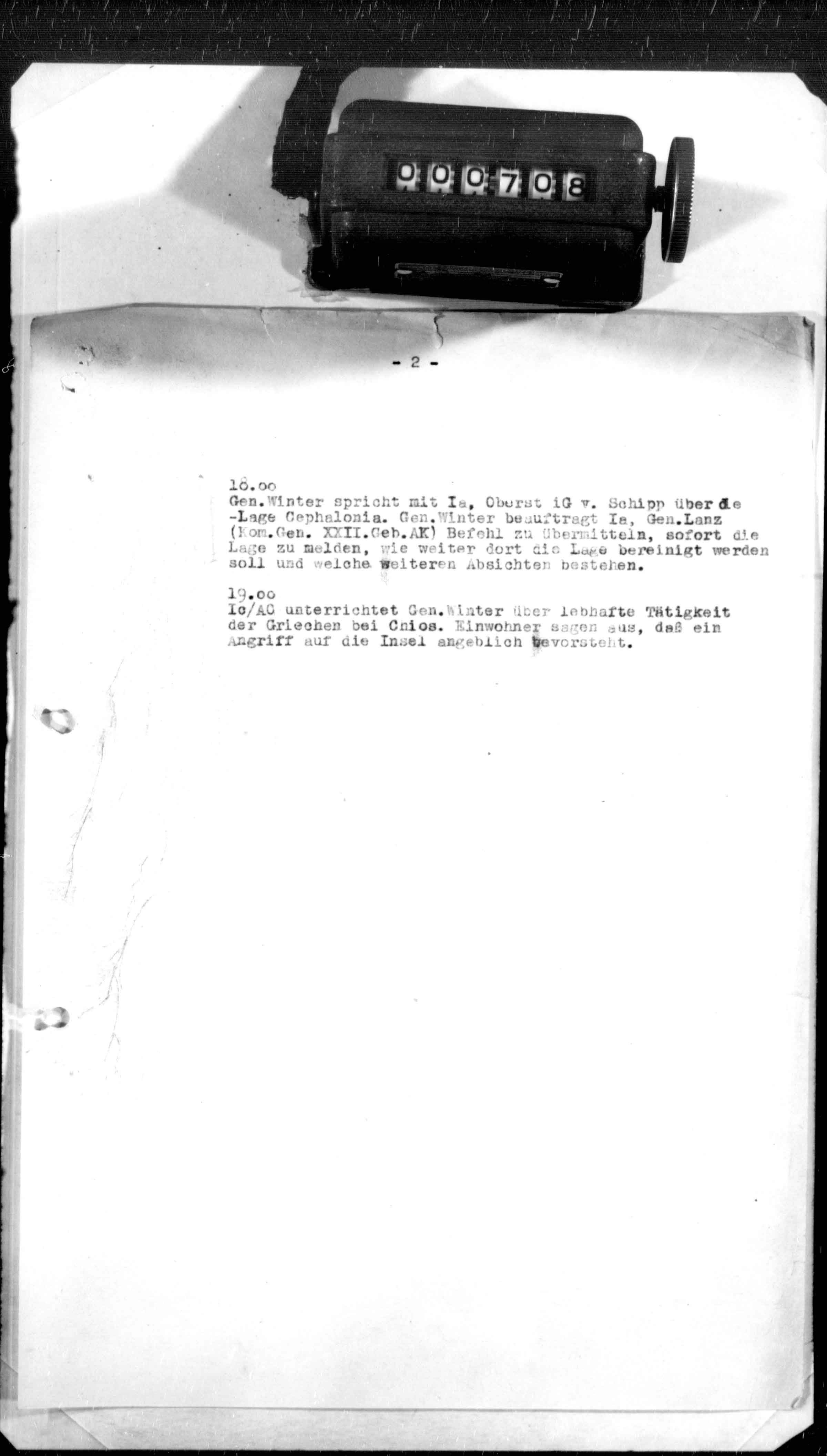 - Prikaz neprijateljskog stanja u Sredozemlju od strane generalštabnog majora Warnstorff-a (dodatak zabilješki sa sastanka kod načelnika štaba Grupe armija /E/ od 9. decembra 1943.).