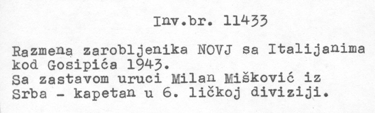 Oznake: 6. lička proleterska divizija NOVJ ★ Gospić ★ Italija u drugom svetskom ratu ★ Zarobljenici u ratu ★ Borbe u Lici 1943. ★ Razmena zarobljenika u oslobodilačkom ratu ★ Srb ★