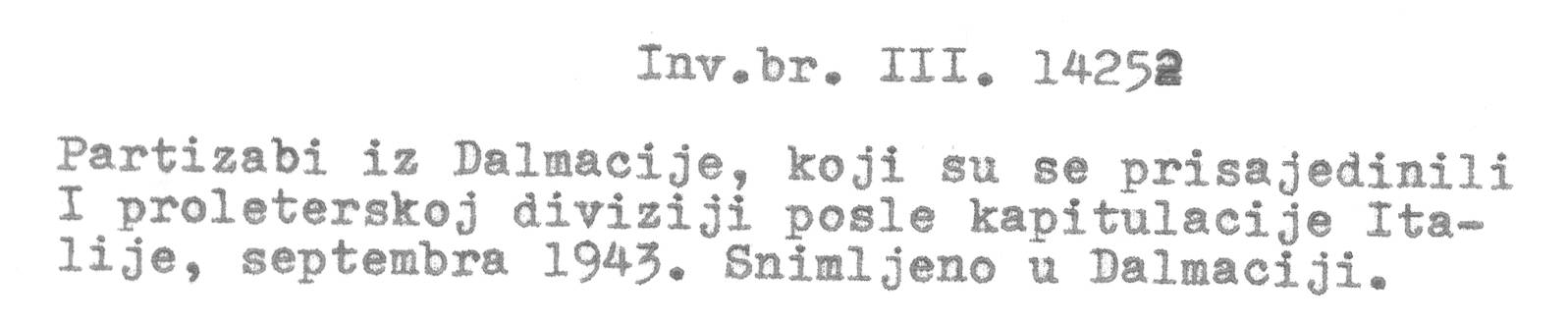 Oznake: 1. proleterska divizija NOVJ ★ Kapitulacija Italije ★ Borbe u Hrvatskoj 1943. ★ Borbe u Dalmaciji 1943. ★ Italija u drugom svetskom ratu ★