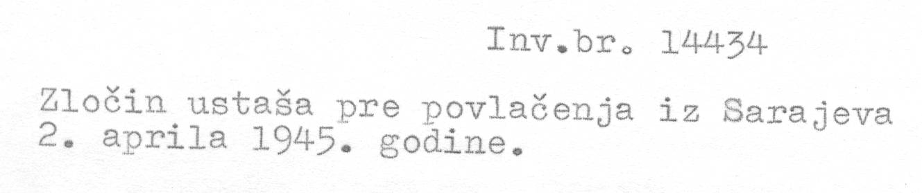 Oznake: Sarajevo ★ Sarajevska operacija ★ Zločini u Jugoslaviji u Drugom svetskom ratu ★ Genocid u NDH ★ Borbe u Bosni i Hercegovini 1945. ★ Završne operacije u Jugoslaviji ★
