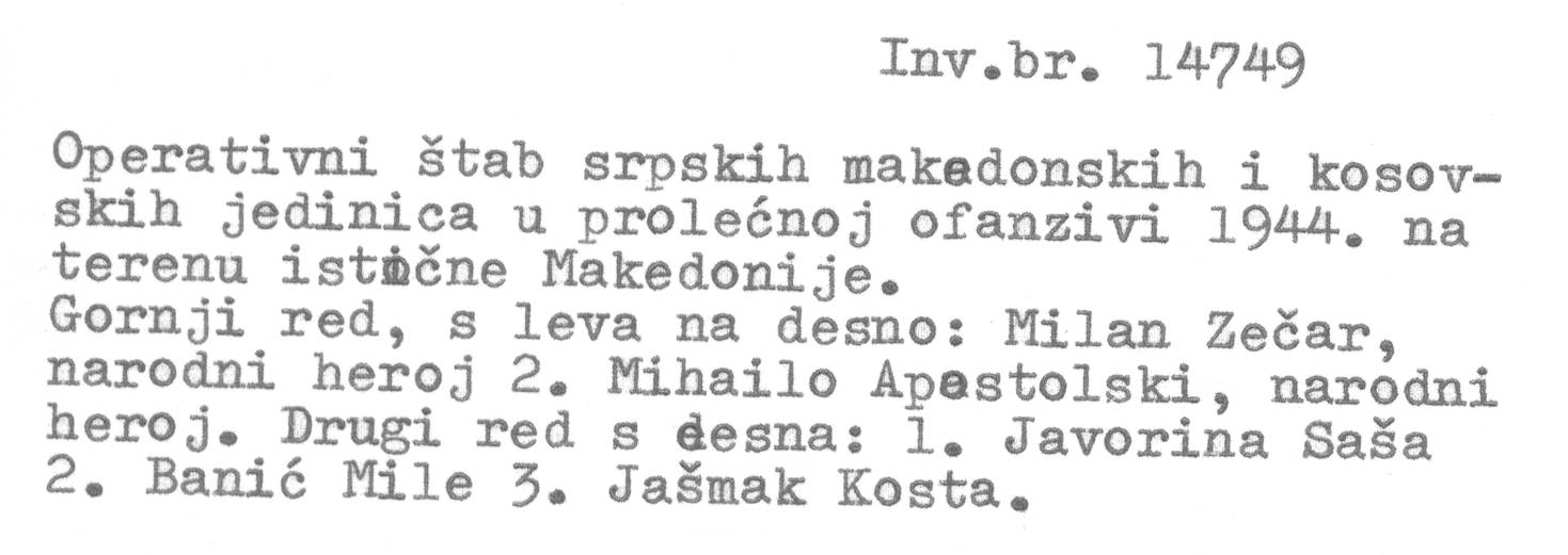 Operativni štab srpskih, makedonskih i kosovskih jedinica u prolećnoj ofanzivi 1944. na terenu…