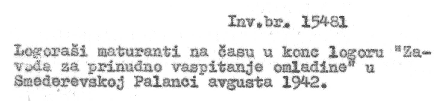 Logoraši maturanti na času u konc logoru Zavoda za prinudno vaspitanje omladine u Smederevskoj…