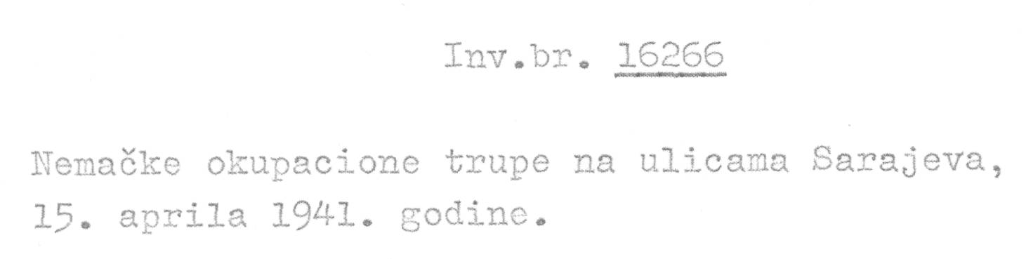 Oznake: Sarajevo ★ Aprilski rat ★ Vermaht u Jugoslaviji ★ Ustanak u Bosni i Hercegovini 1941. ★