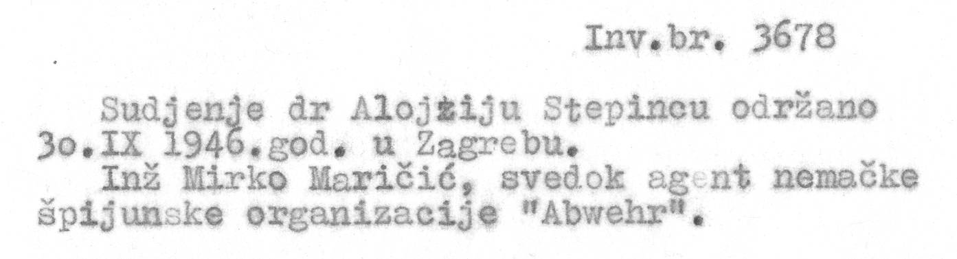 Oznake: Alojzije Stepinac ★ Abwehr ★ Posleratna suđenja u Jugoslaviji ★