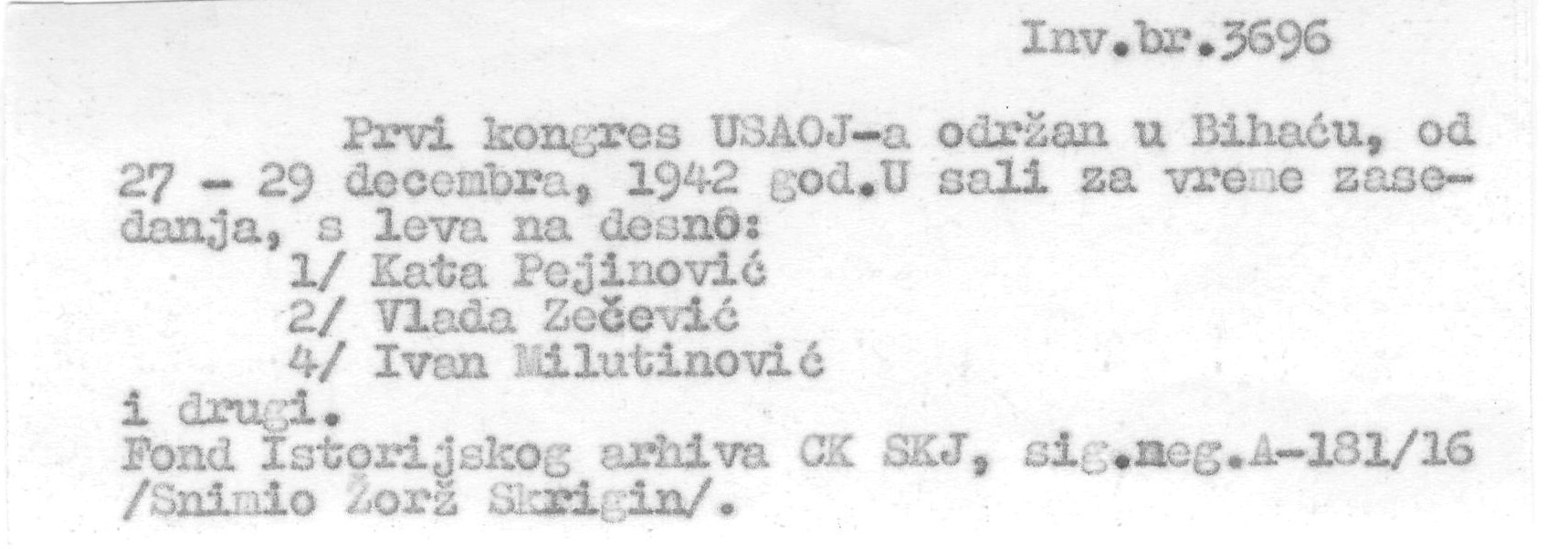 Oznake: Bihać ★ Ivan Milutinović ★ USAOJ ★ Slobodne teritorije u oslobodilačkom ratu ★ Kata Pejnović ★ Vlado Zečević ★