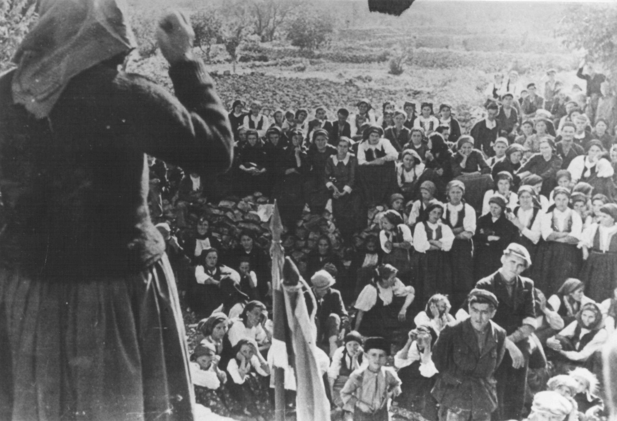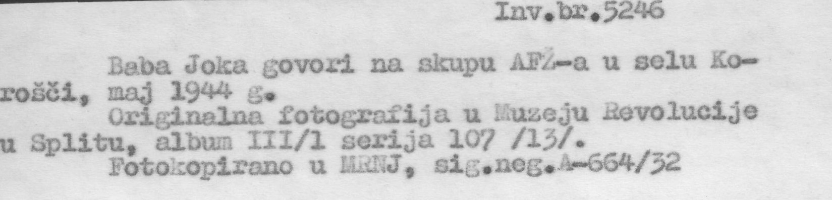 Baba Joka govori na skupu AFŽ-a u selu Korošči, maj 1944.
