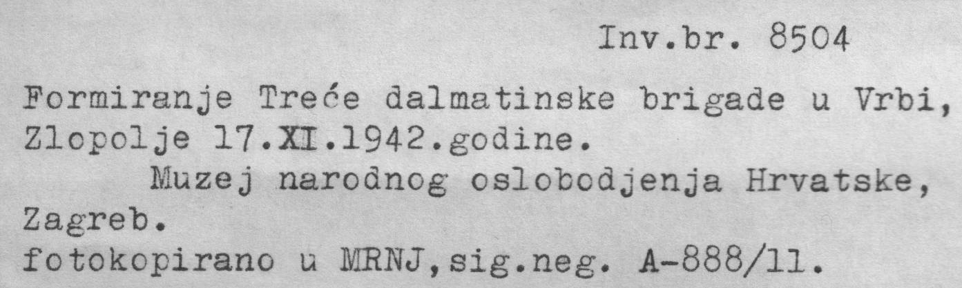 Formiranje Treće dalmatinske brigade u Vrbi, Zlopolje 17.XI.1942.godine.