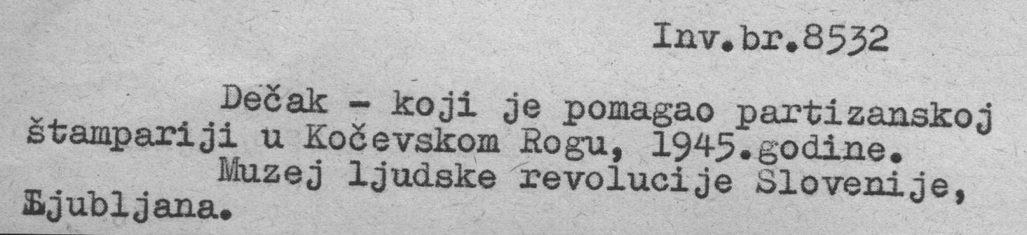 Dečak koji je pomagao partizanskoj štampariji u Kočevskom Hogu, 1945.godine.…