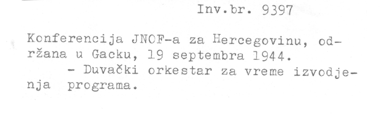 Oznake: Gacko ★ Jedinstveni narodnooslobodilački front (JNOF) ★ Kultura i umetnost u oslobodilačkom ratu ★