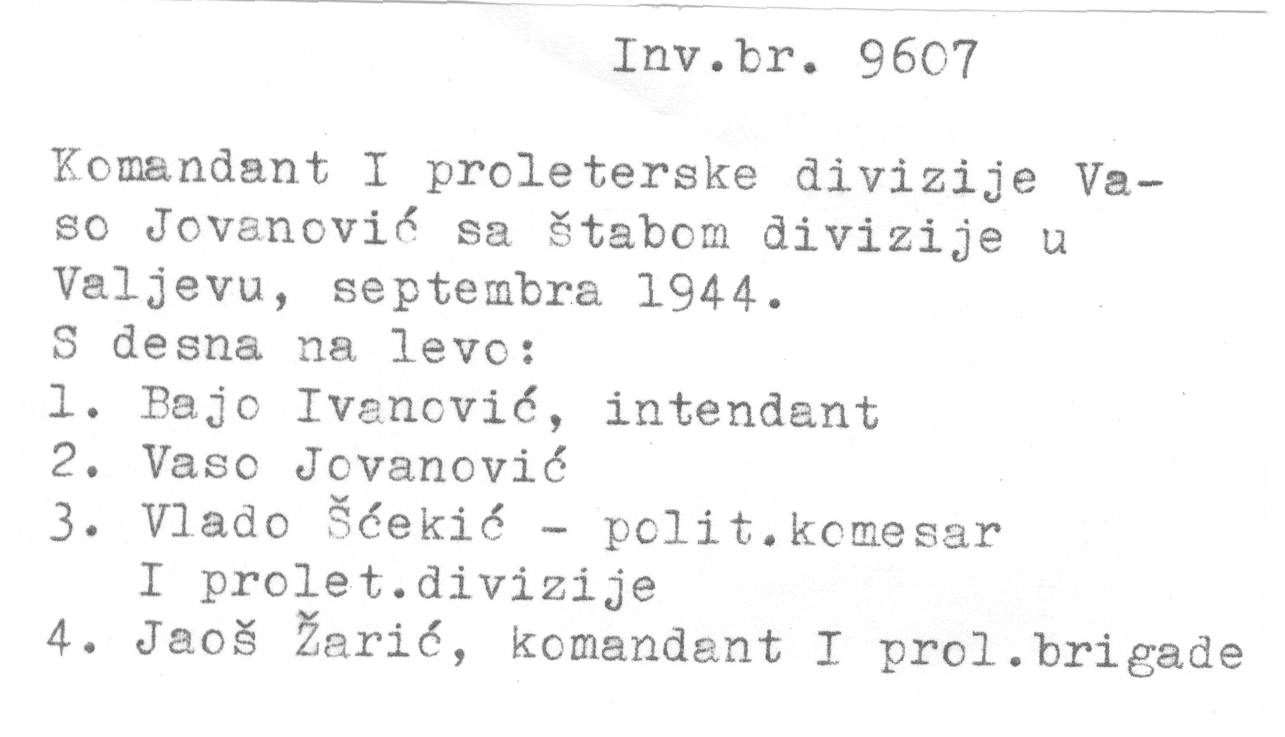 Oznake: 1. proleterska divizija NOVJ ★ Valjevo ★ Vaso Jovanović ★ Borbe u Srbiji 1944. ★ Bitka za Srbiju ★ Intendantura u ratu ★ Vlado Šćekić ★