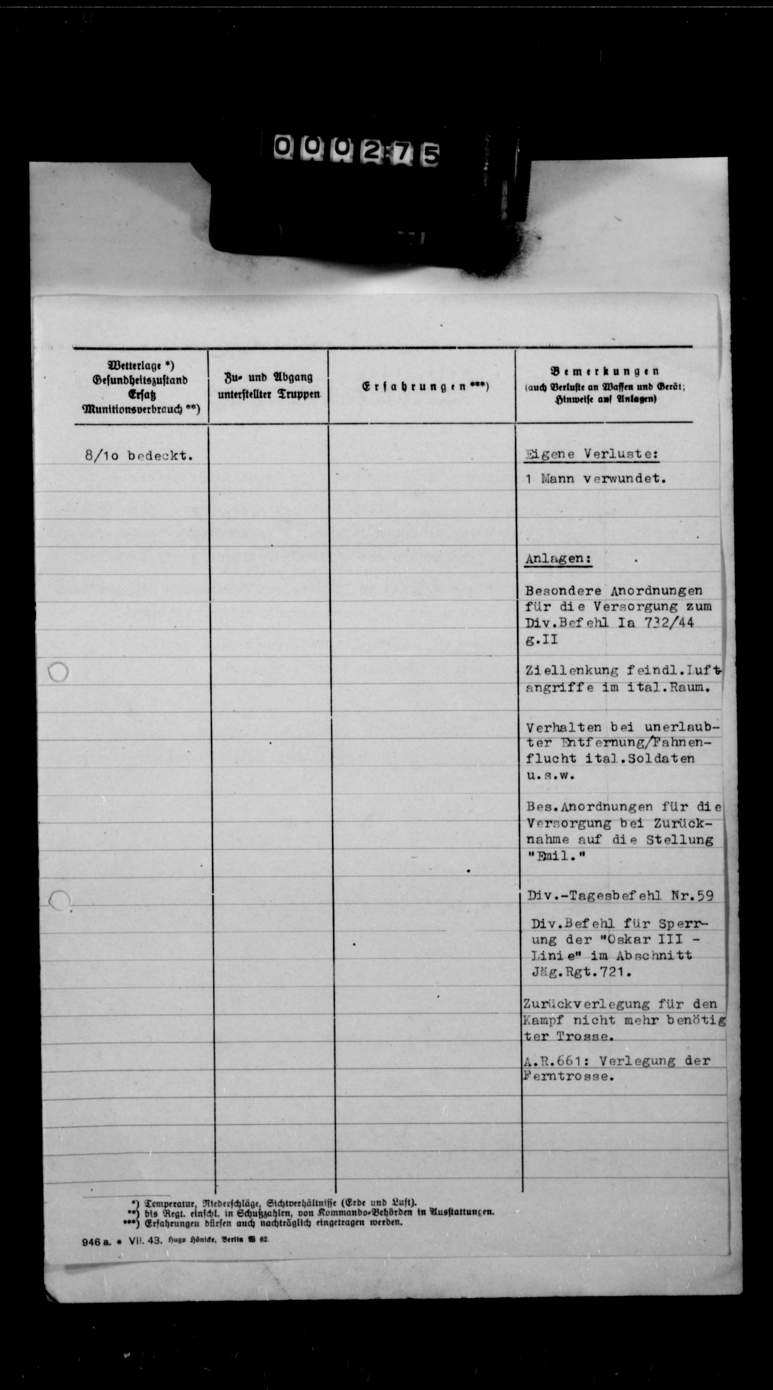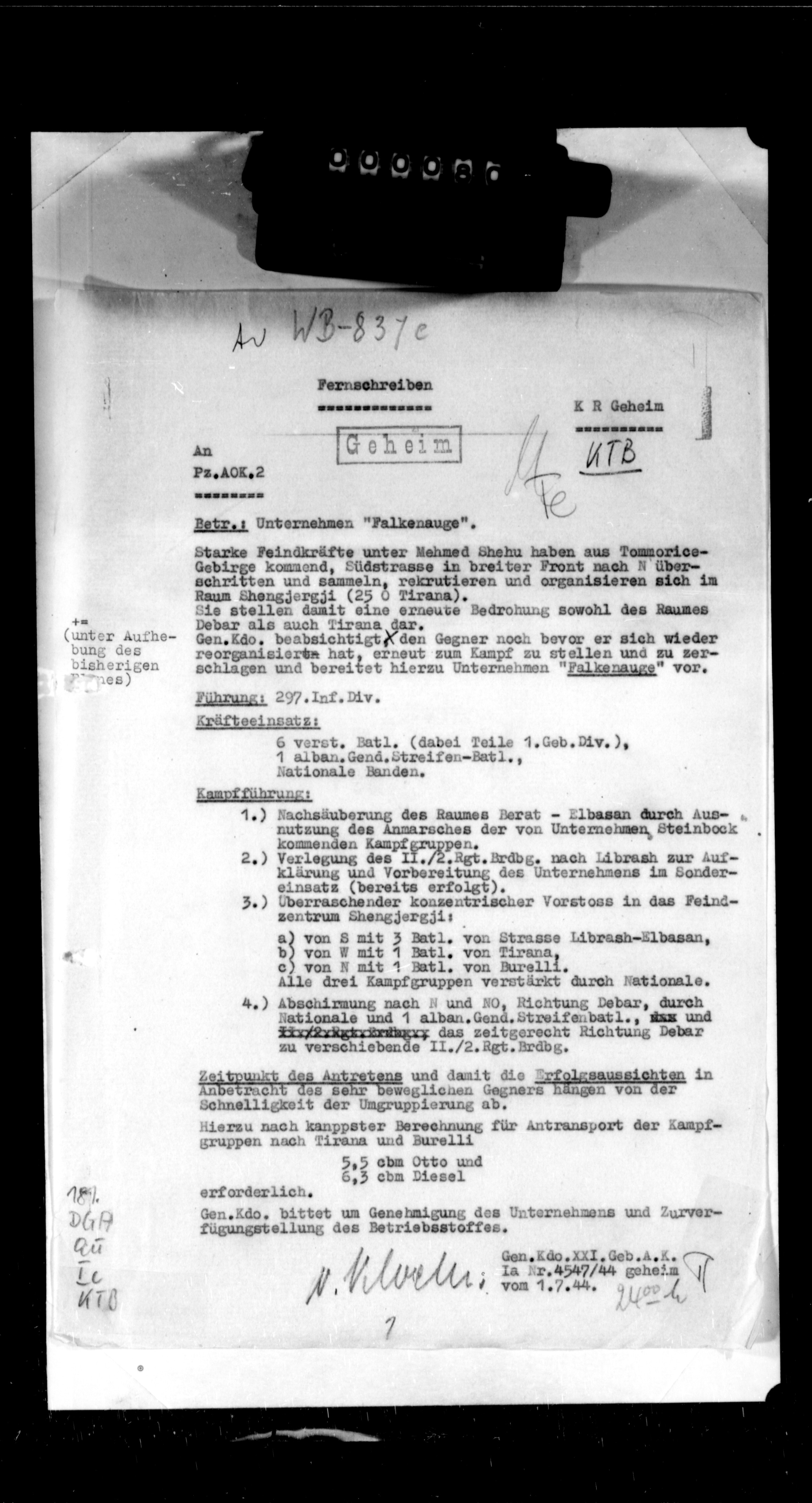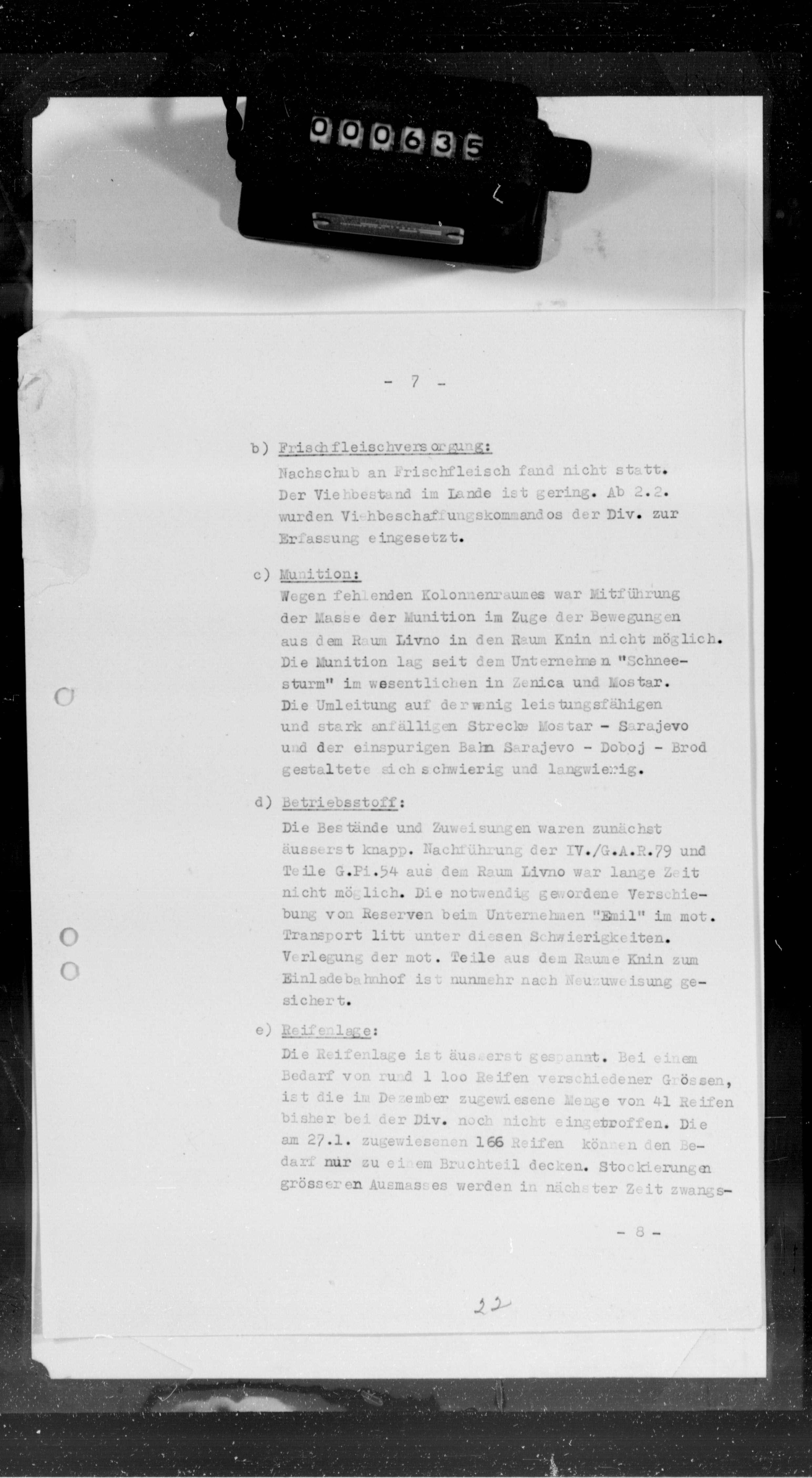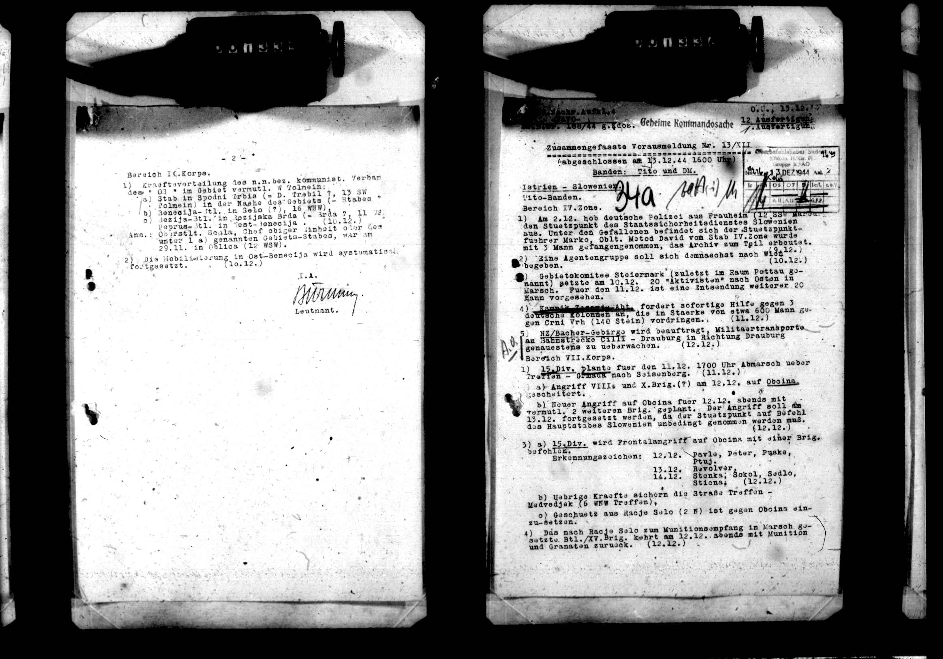 Geb AK XV, 58277/5, KTB Anlagen - Tactical information on a) operation Emil (attack against guerrilla bands), b) evacuation of Drnis, c) mopping up of the area between Rogoznica-Primosten, d) operation island Uljan, and e) various other tactical reports in connection with the campaign along the Croatian coastline of the Adriatic Sea., February 01, 1944 - February 29, 1944 izdvojeno: | 490 |