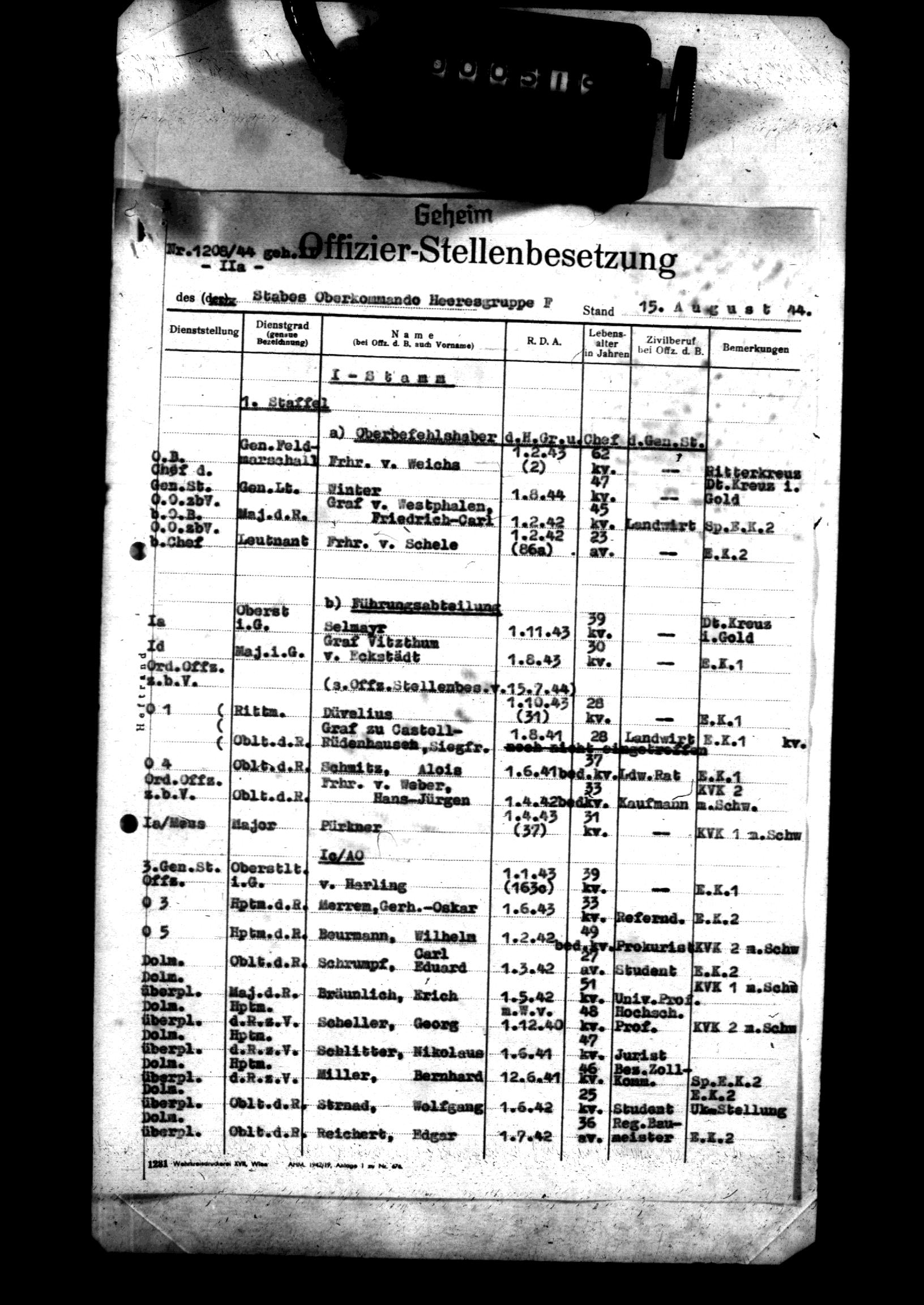 | Armeegruppe | Heeresgruppe E | Heeresgruppe F |