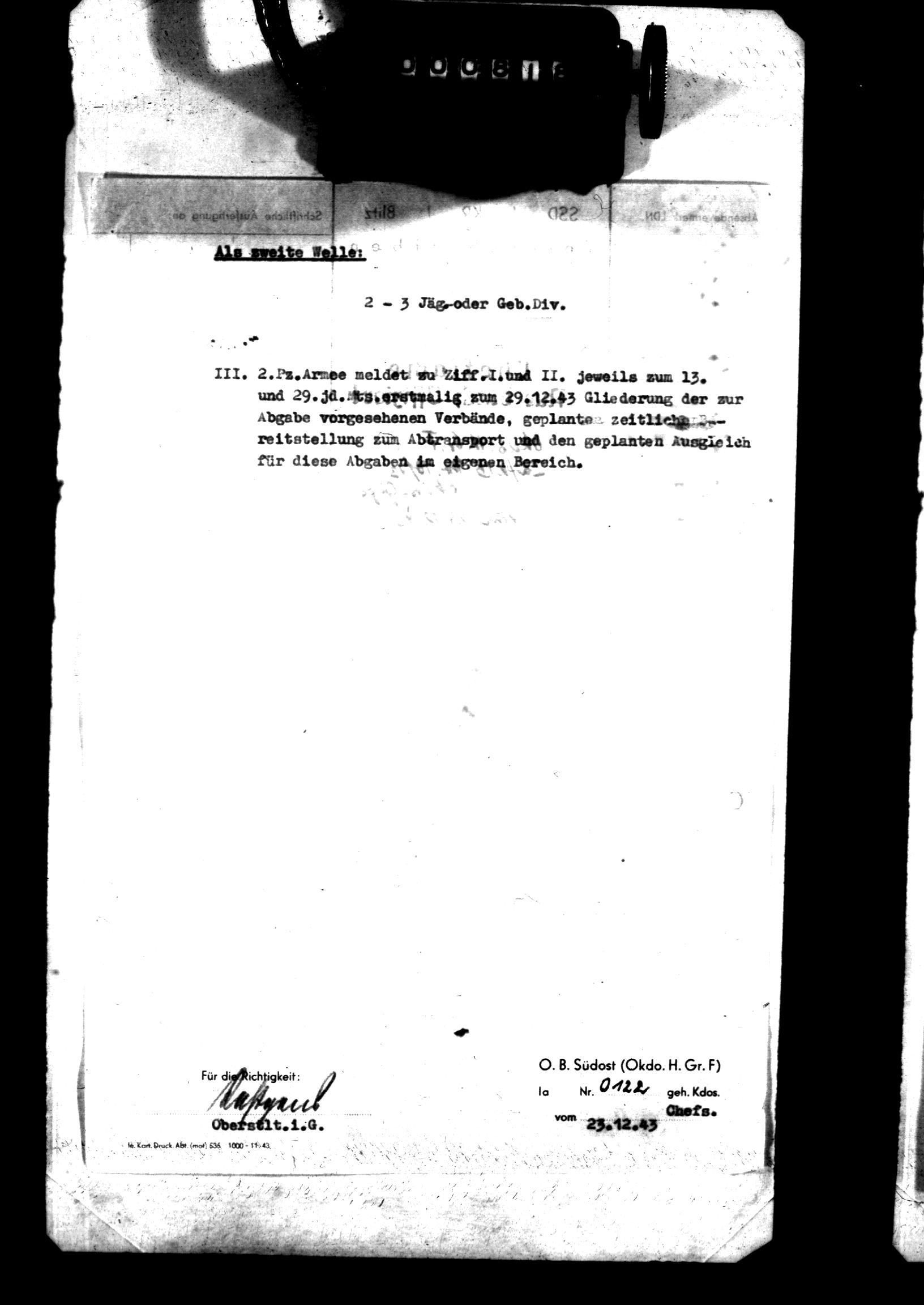 | Armeekorps | XV. Gebirgs Armeekorps | XXI. Gebirgs Armeekorps | II. SS Panzer Armeekorps | XXXIV. Armeekorps | LXVIIII. Armeekorps | LXXXXI. Armeekorps |