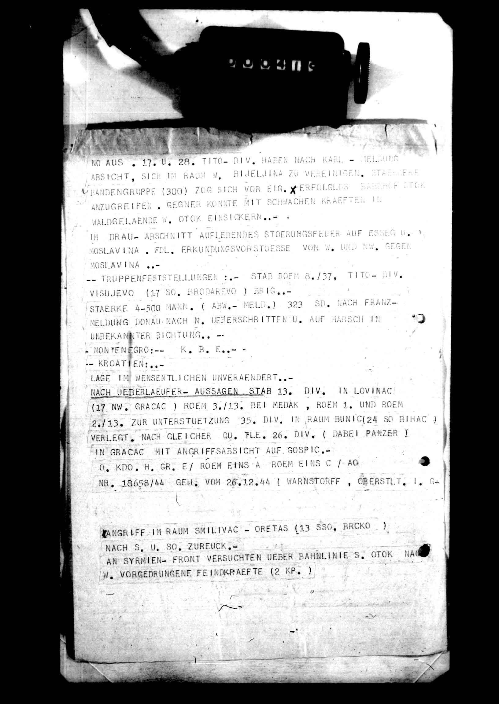 - /18.11. Radio-naređenje D.M. Đujiću da još više nego do sada ratuje zajedno sa njemačkim Wehrmachom protiv komunista, jer su oni izdali srpsku stvar. On sam ne može tako postupiti zbog stava naroda./ (frame no. 223)