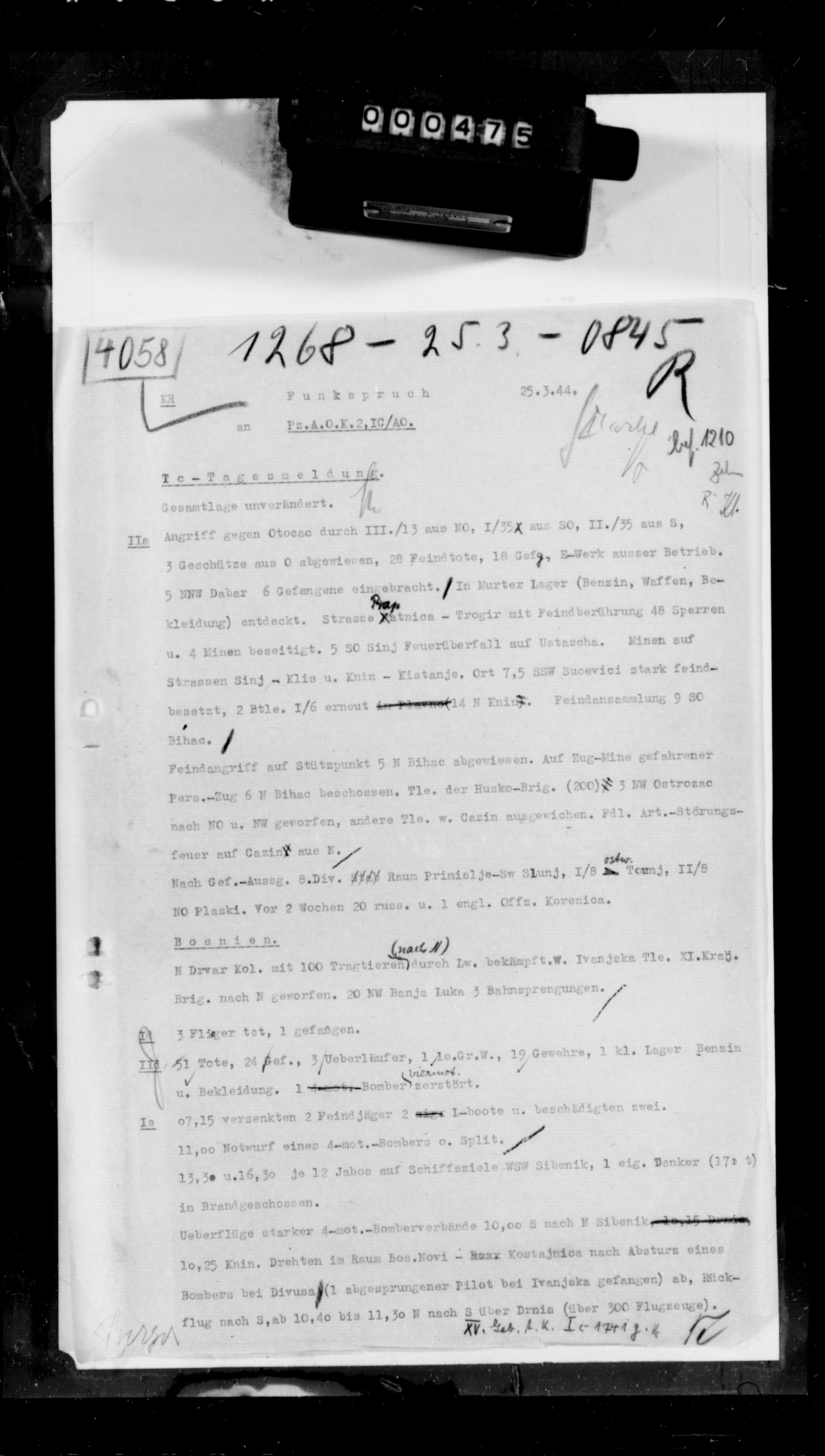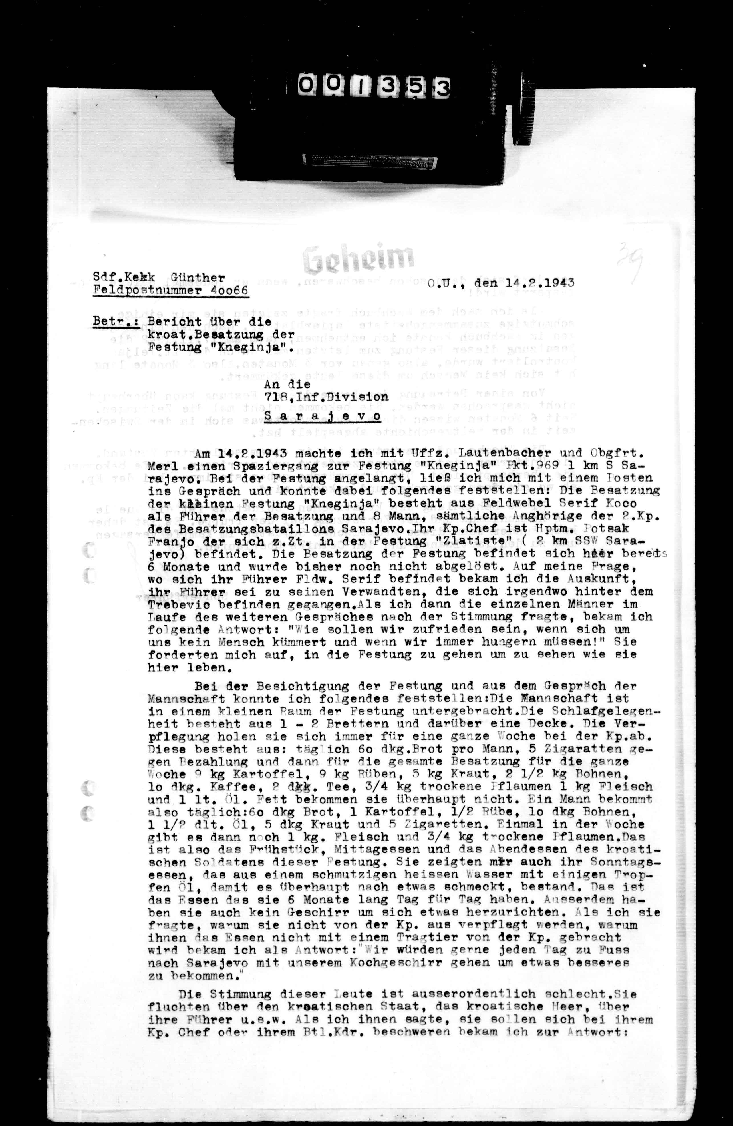 34404/1 - Ia, KTB 3. - War journal concerning operations against partisans, mopping-up action, security, training, regrouping, daily division losses, aad partisan activity in the Jajce, Travnik, Sarajevo, Zepce, Turbe, Visegrad, Senica, Tuzla, Kladanj, Derveata, Donji Vakuf, Zvornik, Olovo, Trnovo, Prozor, Tarcin, Mostar, and Kiseljak areas. Jan 01 - Mar 31, 1943., January 01, 1943 - March 31, 1943 izdvojeno: | 177 |