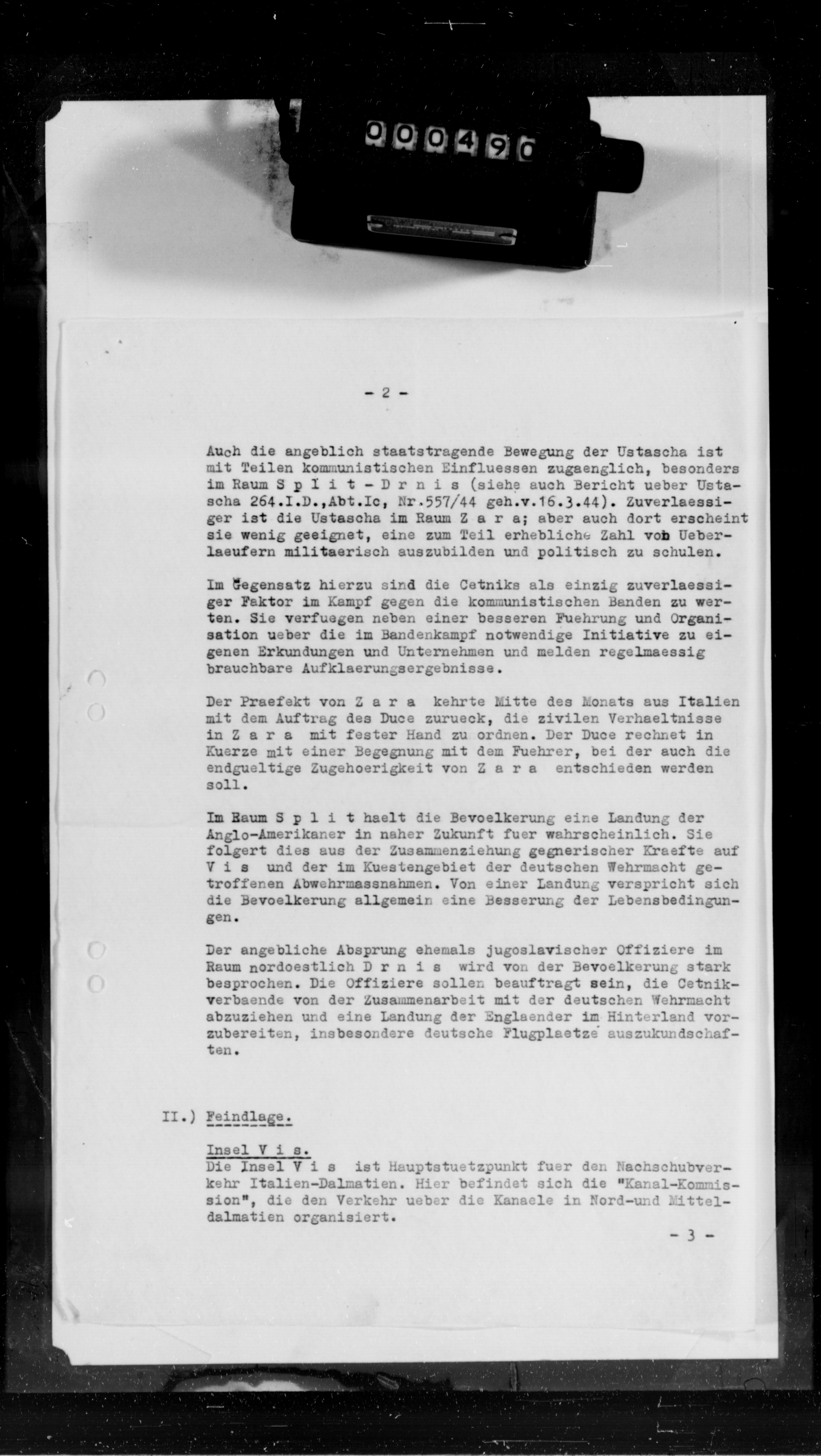 - Tagesmeldung - Generalkommando XV G.A.K 1.3.44; Raum Banja Luka: Bei versuchter Verhaftung von Cetniks durch Ustascha 1 Cetnik niedergeschossen, 1 zum S.D. geflüchtet.