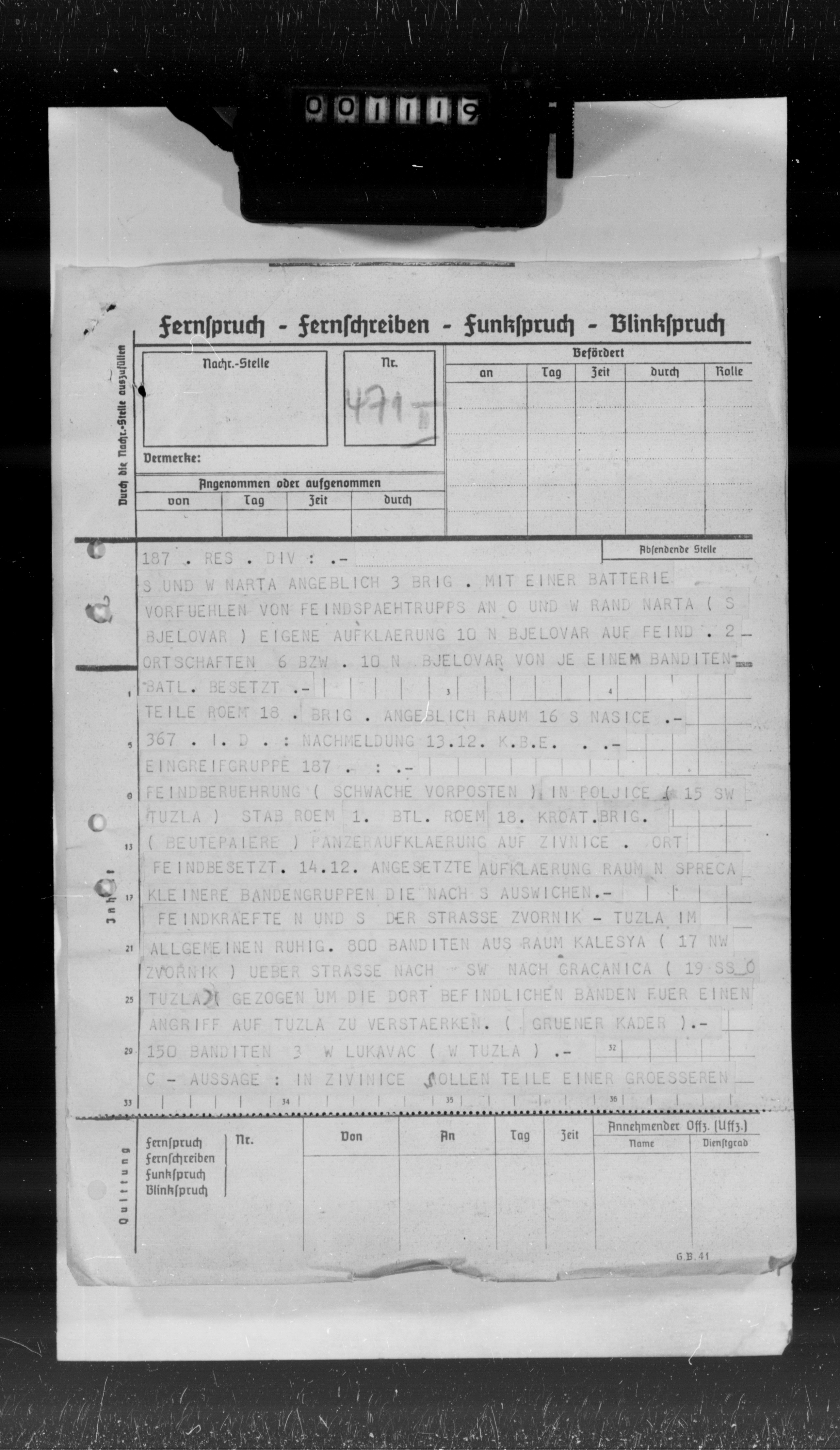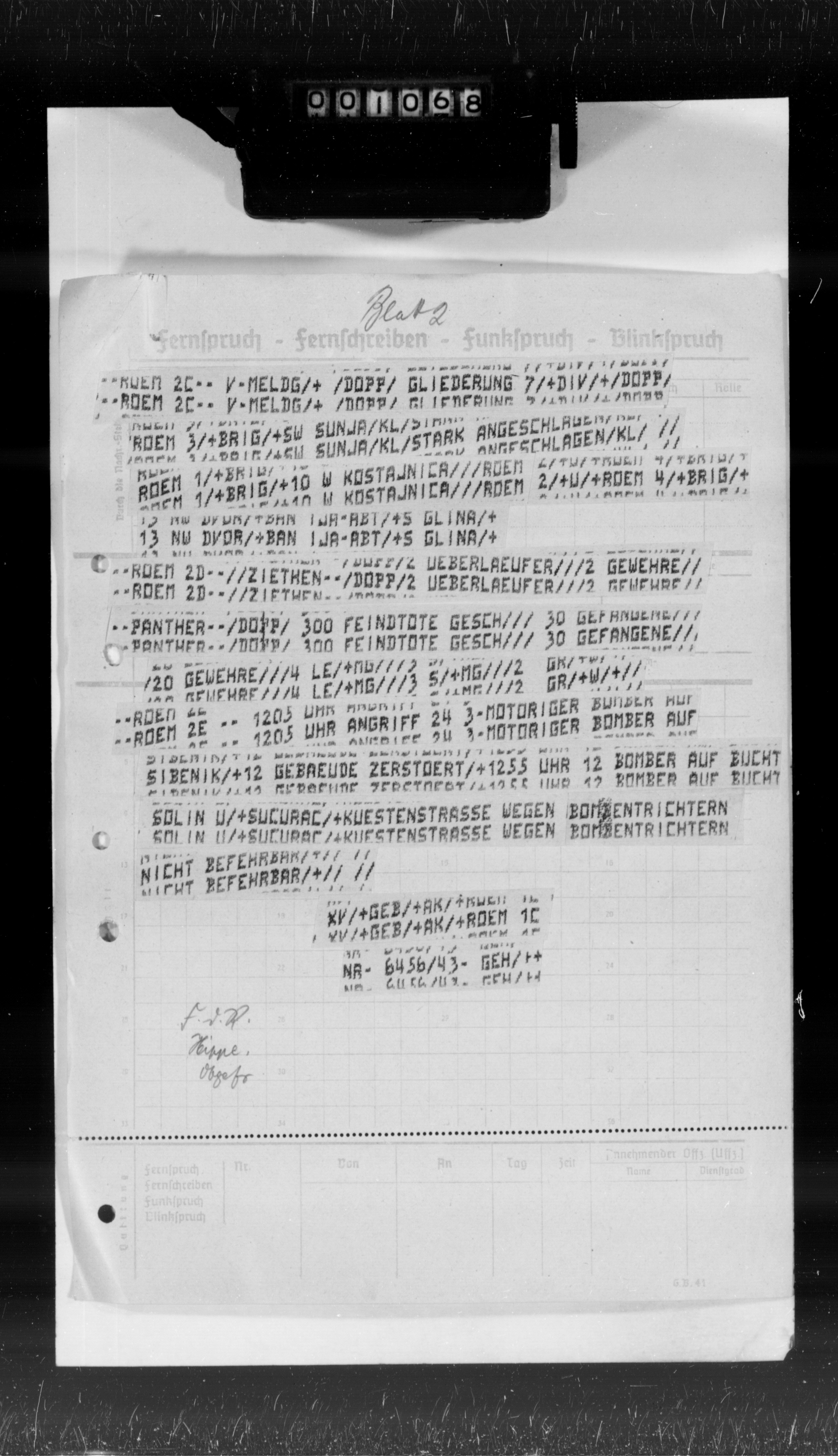 Pz AOK 2 43407/53, Ic, Anlagenband 11 zum Tätigkeitsbericht - Radio messages and daily reports relating to combat situation, enemy activities and partisan warfare, December 11, 1943 - December 20, 1943