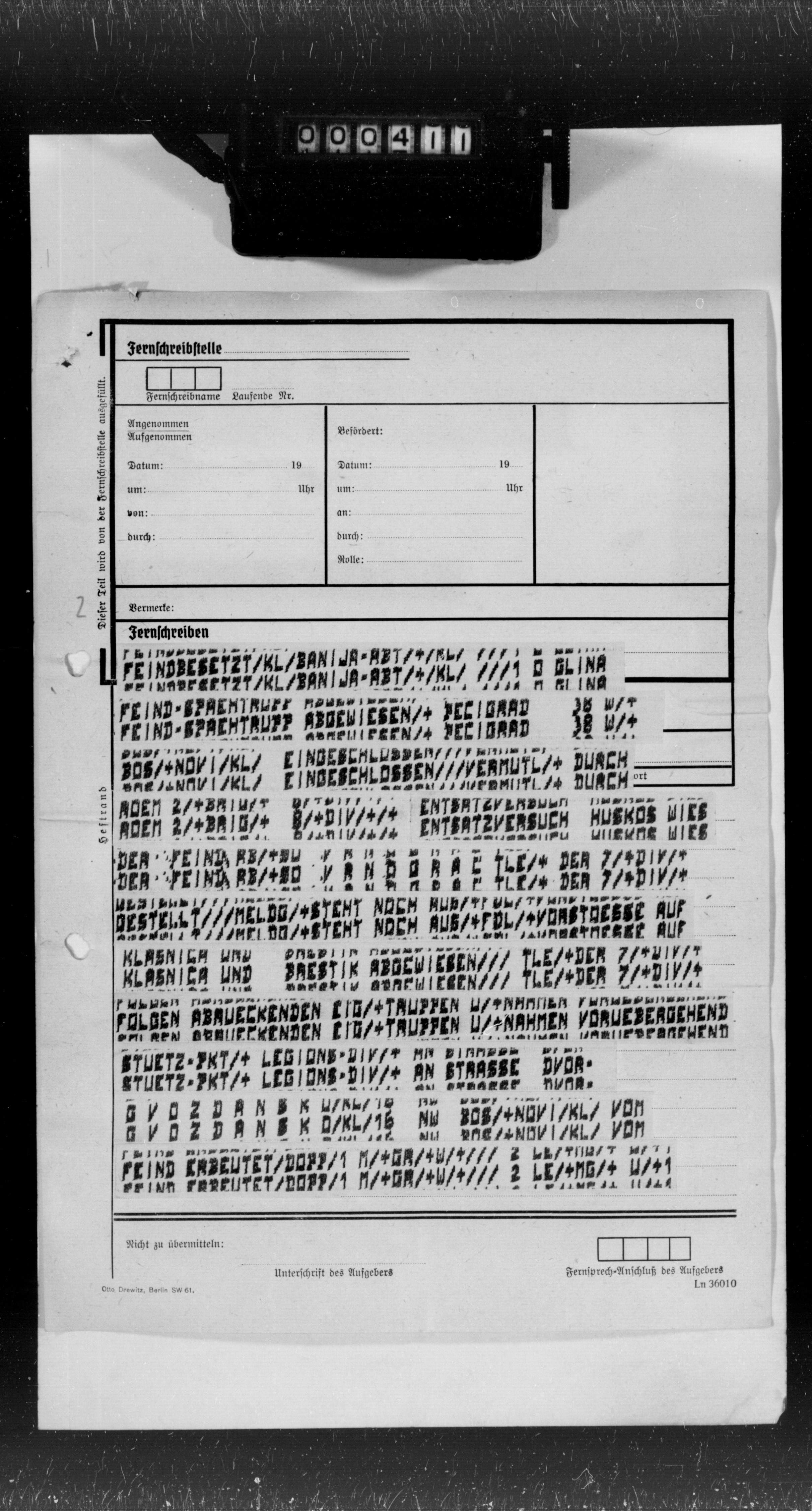 Pz AOK 2 43407/54, Ic, Anlagenband 12 zum Tätigkeitsbericht - Radio messages and daily reports relating to combat situation, enemy activities and partisan warfare, December 21, 1943 - December 31, 1943