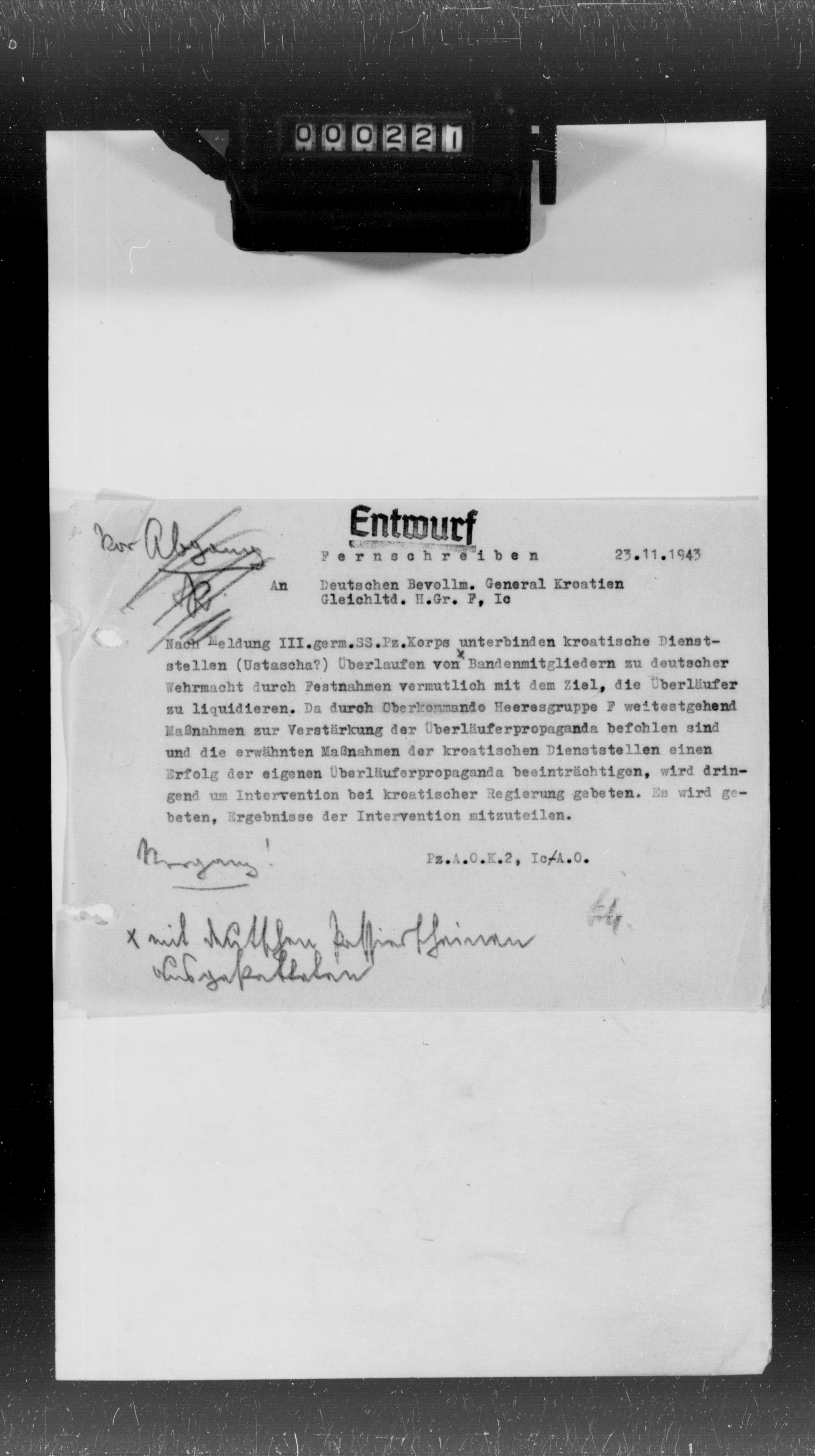 Pz AOK 2 43407/58, Ic, Anlagenband 16 zum Tätigkeitsbericht - Reports on the inefficiency of Croatian units, partisan warfare and spread of Communism in Yugoslavia, November 01, 1943 - December 31, 1943