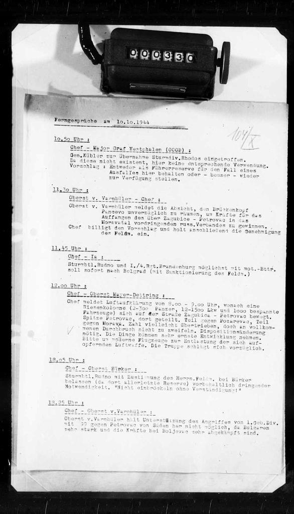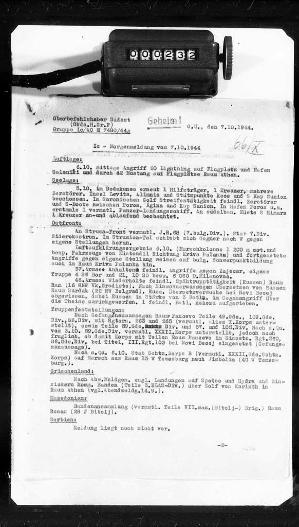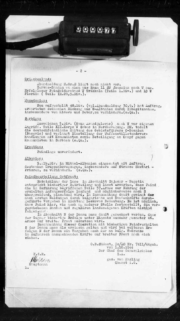 - Izvještaj sa savjetovanja kod načelnika štaba jugoistoka od 2. Oktobra 1944 (1. oktobar 1944.).