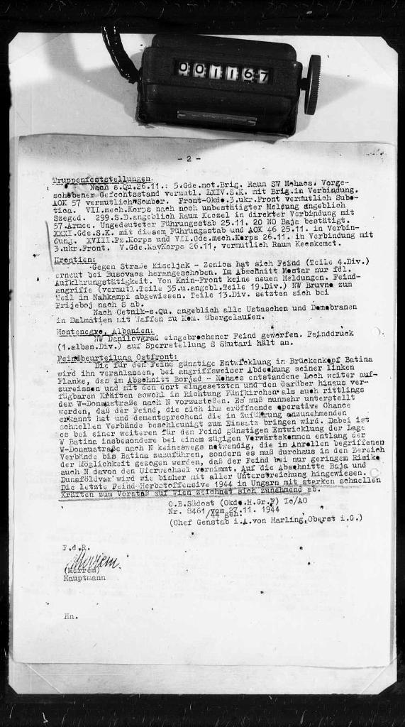 - 2: Večernji izvještaj obavještajnog odjeljenja (8. novembar 1944.).