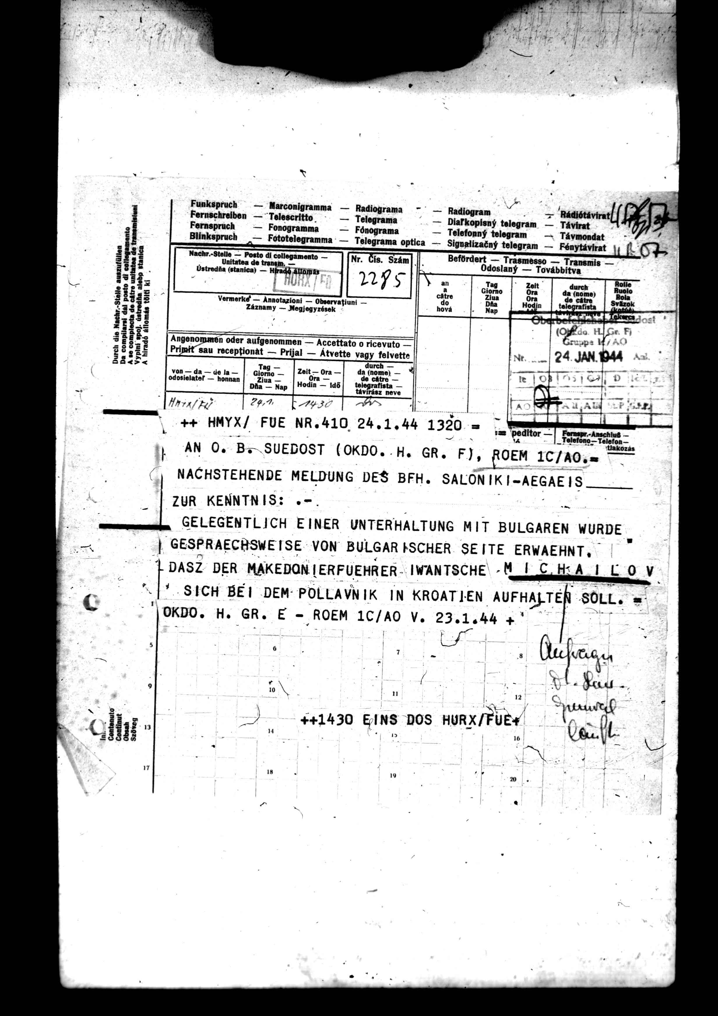Documents from National Archive Washington