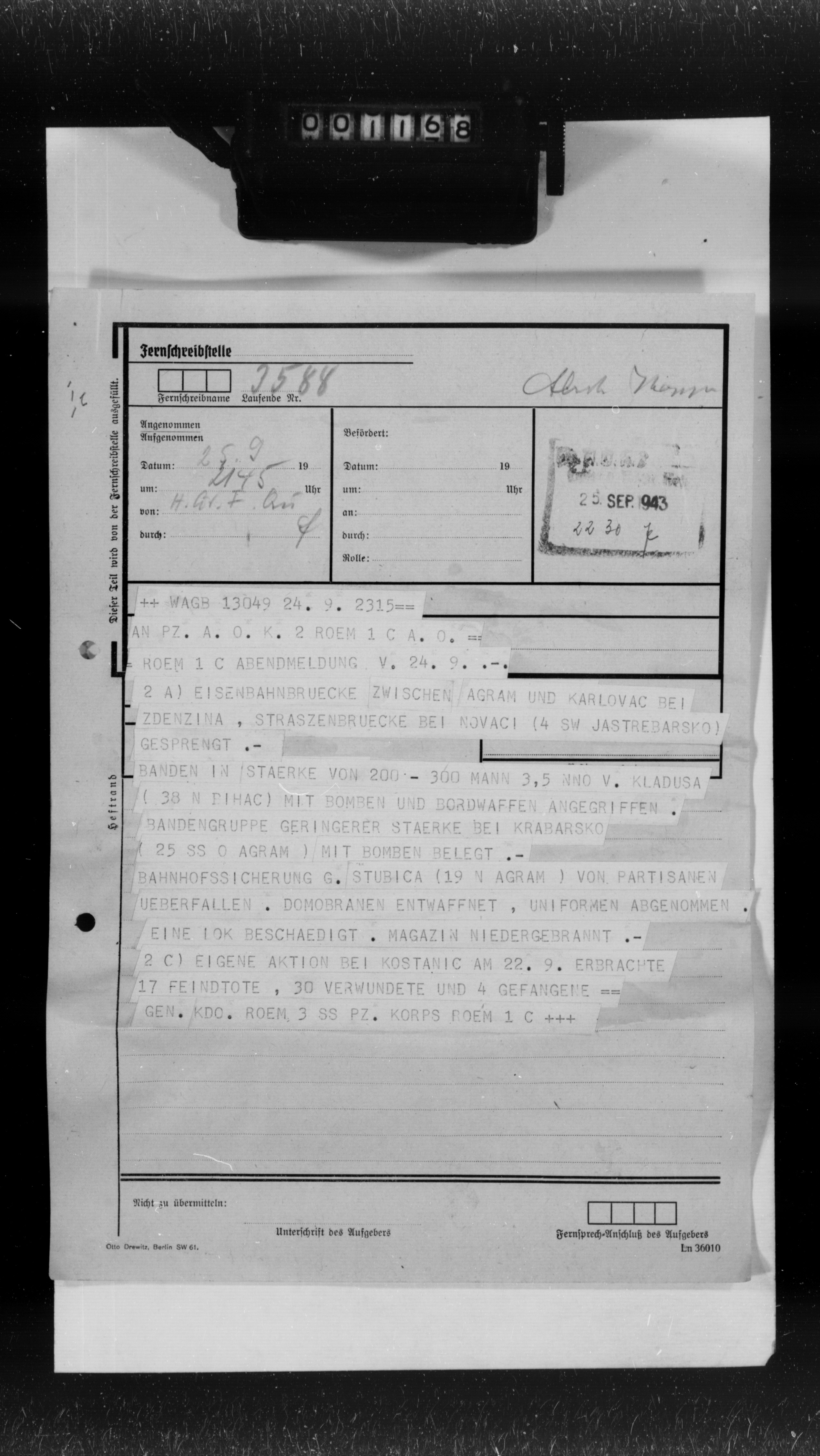 - Telegram-izveštaj komande Jugoistoka, 20.09.43: