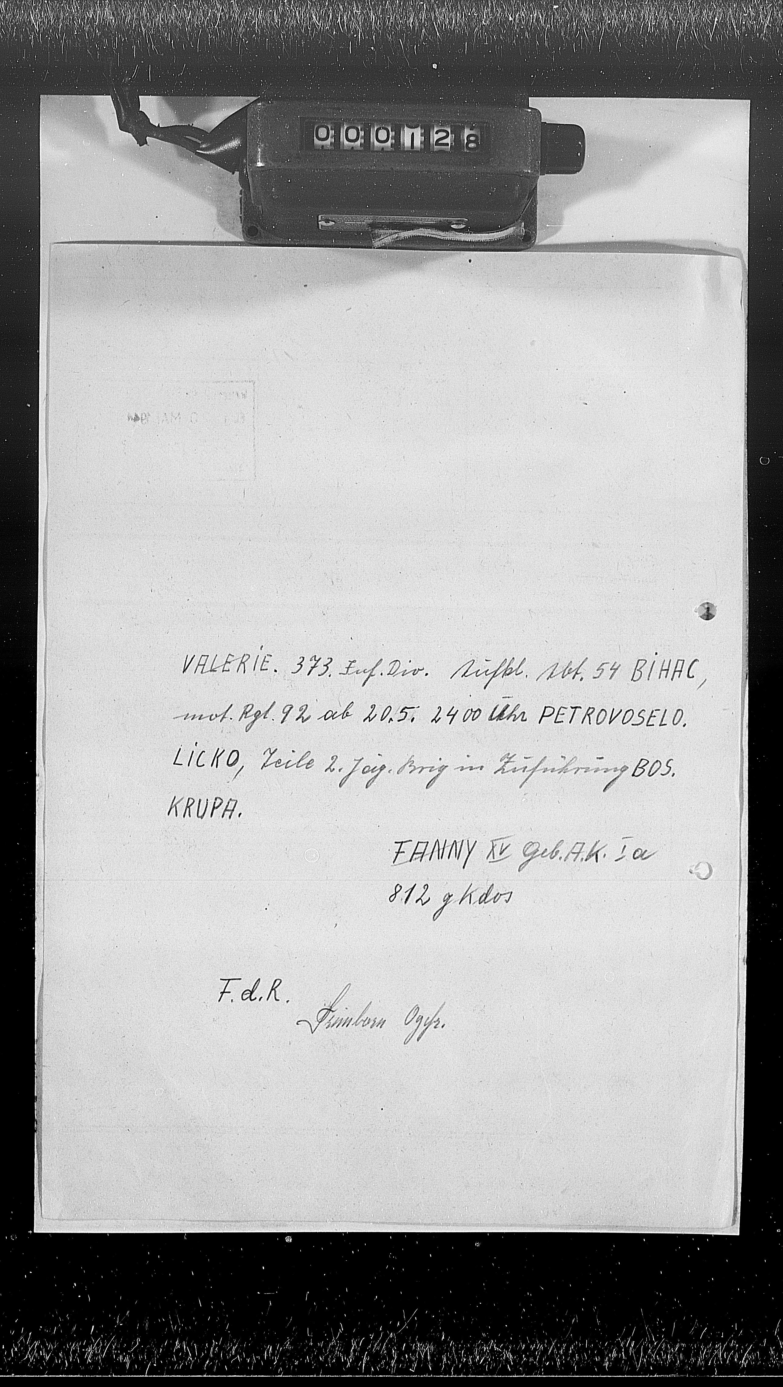 - Uklj. 1. kozačku, 42. JaegDiv [bivša 187. ResDiv.], 173. ResDiv., 367. ID/330. GebDiv., 1. GebDiv., 1. JaegResReg, Sturm-Bat. PzAOK 2 [odn. -Waffenschule PzAOK 2], sigurnosni odsjek Bjelovar, pol. i NDH jedinice, trupe za osiguranje željeznica, transportne jedinice, itd. (frame no. 592)