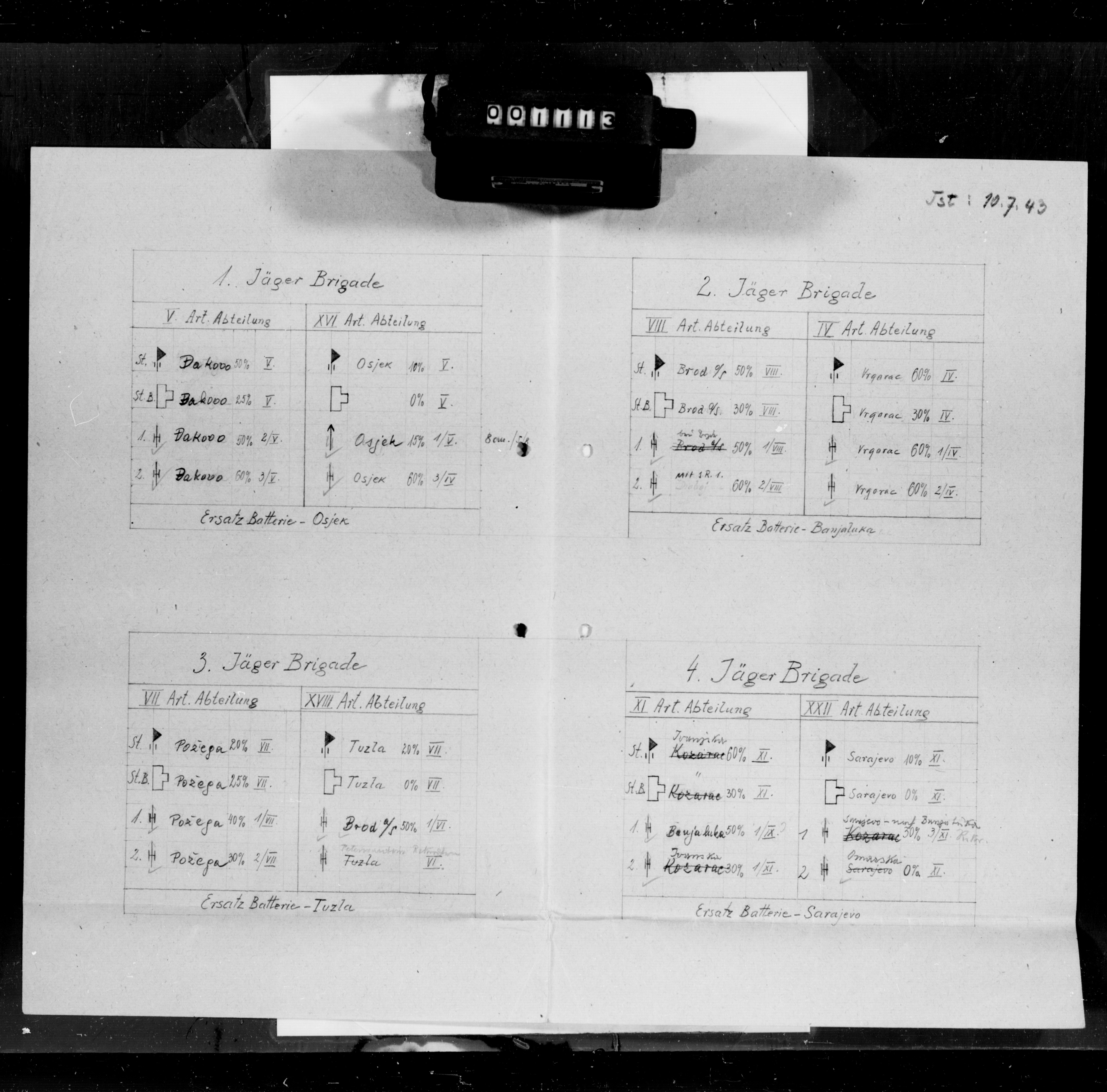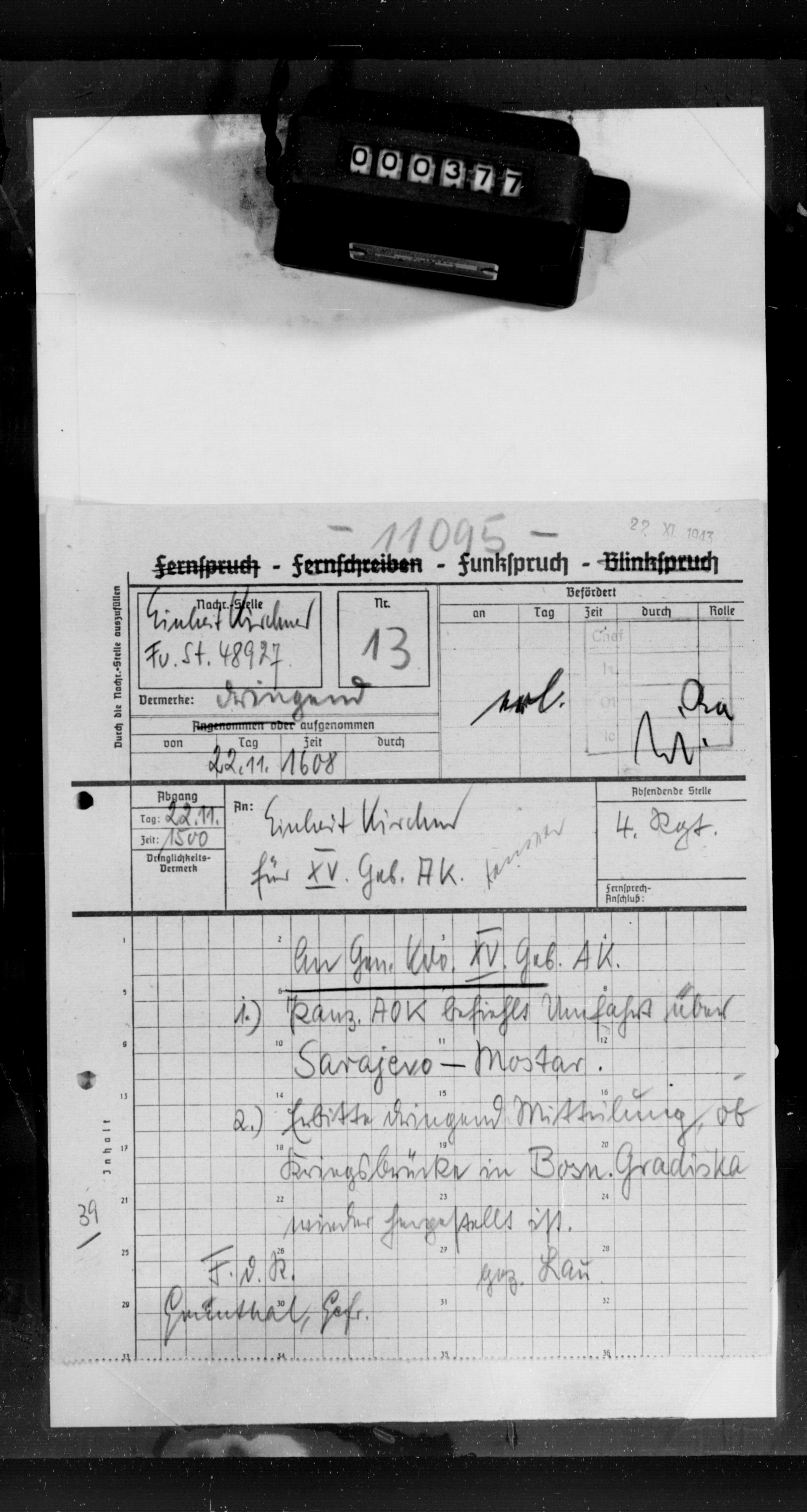 Geb AK XV, 46764/25, Ia, Vorgesch.Gefechtsstand - Information on tactical operations at the Advance Command Post at Doboj (Bosna River)., October 15, 1943 - October 25, 1943 izdvojeno: | 177 |