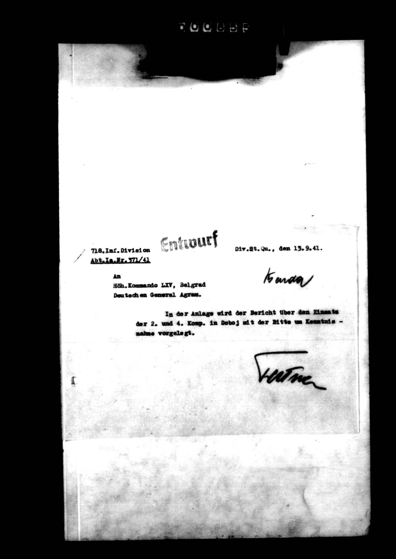 18349/1 - 718 Inf Div. Ia, Kriegstagebuch - War Diary covering unit activation, occupation duty and antipartisan warfare in Yugoslavia, May 14, 1941 - December 31, 1941 izdvojeno: | 1 |  |