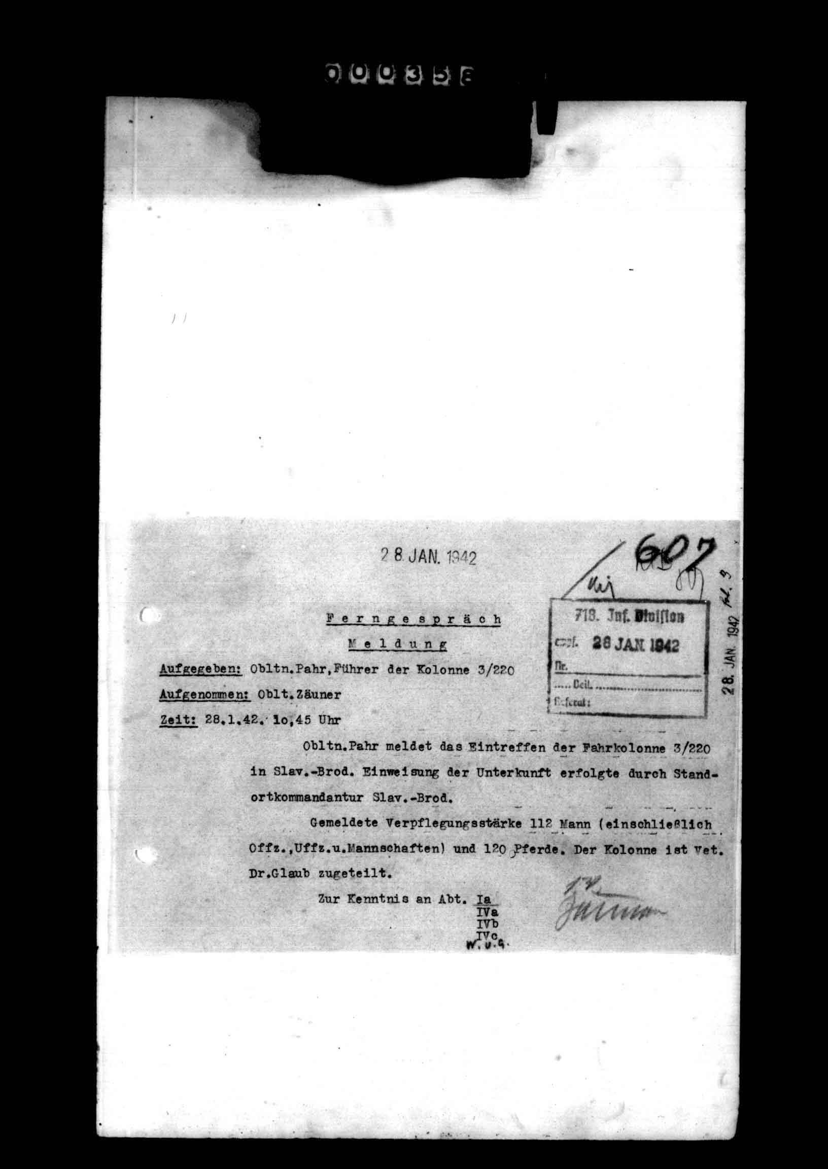 28326/6 - 718 Inf Div. Ia, Anlagenband XIII zum Kriegstagebuch Nr. 2. Anlagen 605/2 - Annexes to War Diary Nr. 2. Reports relating to unit occupation duty and antipartisan warfare in Yugoslavia., January 26, 1942 - February 04, 1942