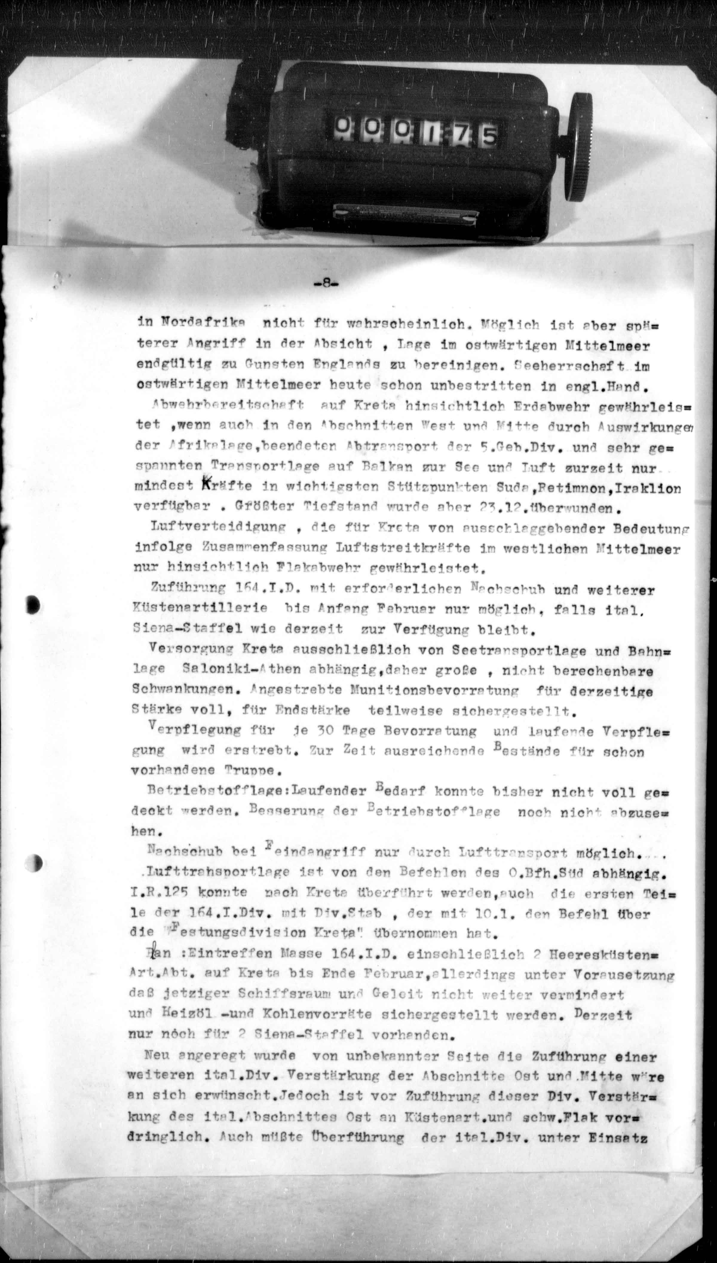 - Prikaz neprijateljskog stanja u Sredozemlju od strane generalštabnog majora Warnstorff-a (dodatak zabilješki sa sastanka kod načelnika štaba Grupe armija /E/ od 9. decembra 1943.).