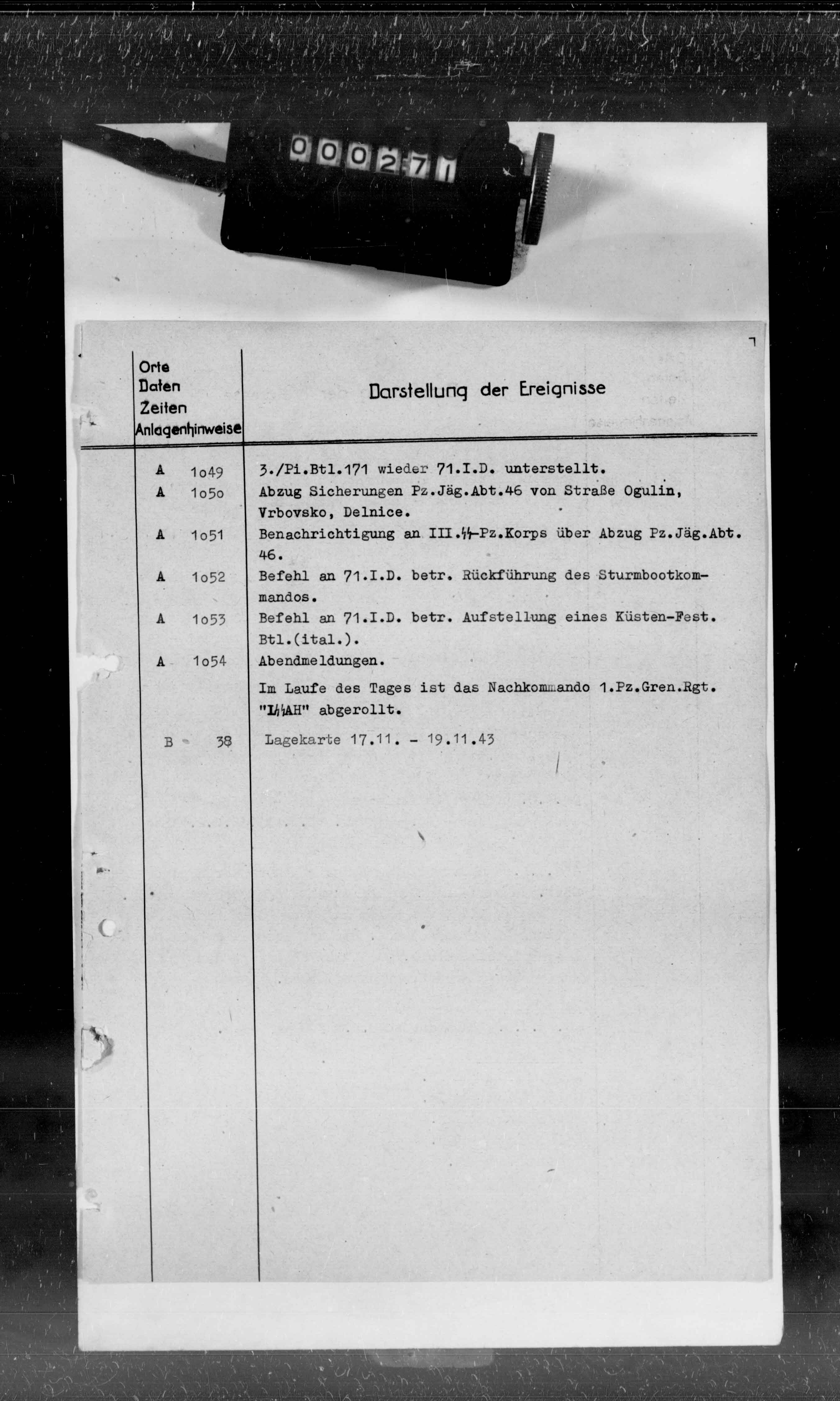 Kriegstagebuch Nr. 7, II. SS. Panzerkorps - 64320/1: War Journal Nr. 7 covering unit transfer from the eastern front to northern Italy for reorganization, coastal security duty, disarming Italian units, occupation duty and partisan warfare in Italy [Slovenia], August 03, 1943 - December 03, 1943 izdvojeno: | 63 |