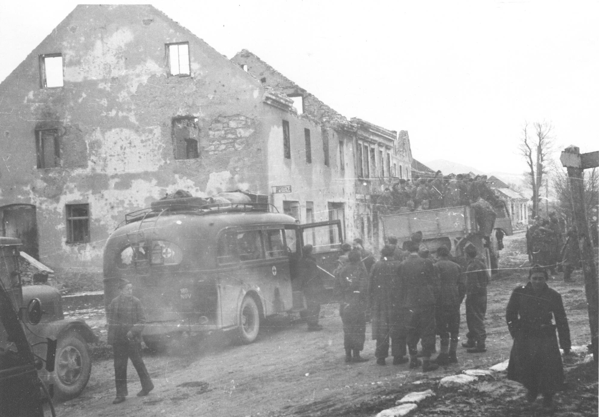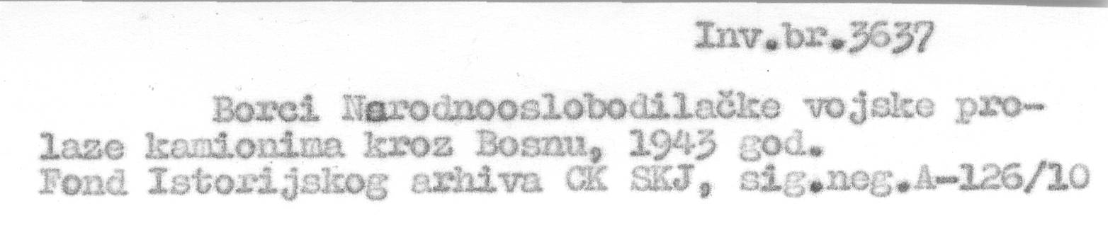 Partizani prolaze kamionima kroz Bosnu 1943.