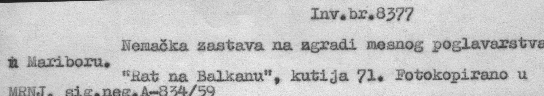 Opis: Nije unetIzvorni opis: Datum: 1941-04-10. (napomena: neki datumi su okvirni) Oblast: Slovenija Izvor: Muzej revolucije naroda Jugoslavije URL: http://www.znaci.org/images/8377.jpg Oznake: Aprilski rat ★